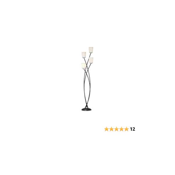 Overall: 70 1/2″ high. Base is 11″ wide. Each glass is 4.75″ wide x 6″ high. Usesd four maximum 60 watt standard-medium base bulbs not included. On-off foot switch on the cord. A contemporary floor lamp design from Kathy Ireland. Black finish base and columns. White frosted glass. This contemporary floor lamp design from Kathy Ireland lighting combines exquisite style and grace. Contouring arms reach upward to fixtures that glow with white frosted glass. A wonderful updated look for living rooms and bedrooms.