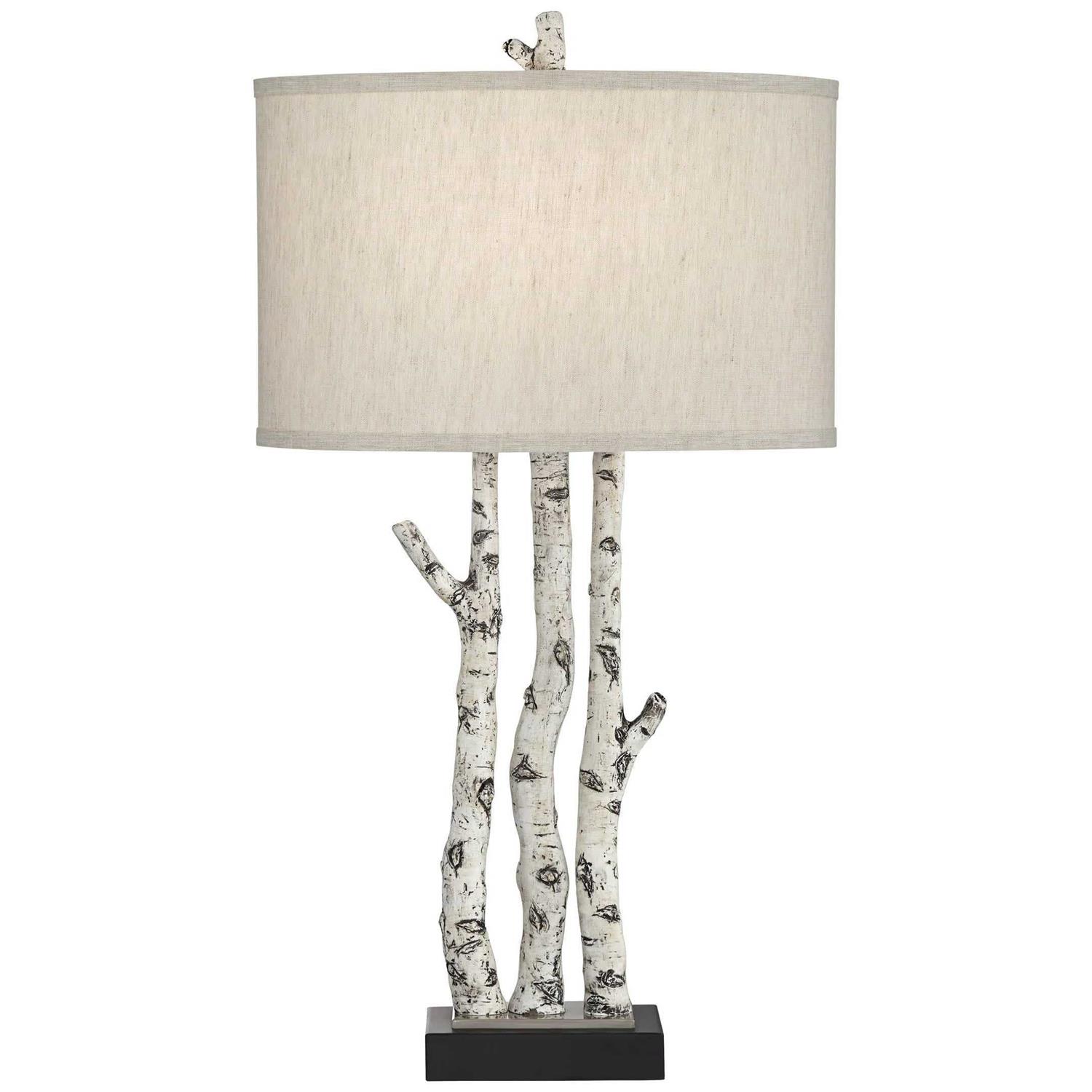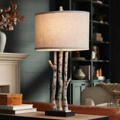 Bestow your home with a woodsy feel when you add this rustic birch tree branches table lamp. It’s crafted with a natural finish over polyresin construction and evokes images of a tree with distressed bark accents. It sits on a metal base topped by a cool gray linen fabric shade and is perfect for that eclectic den or vibrant entertainment room.