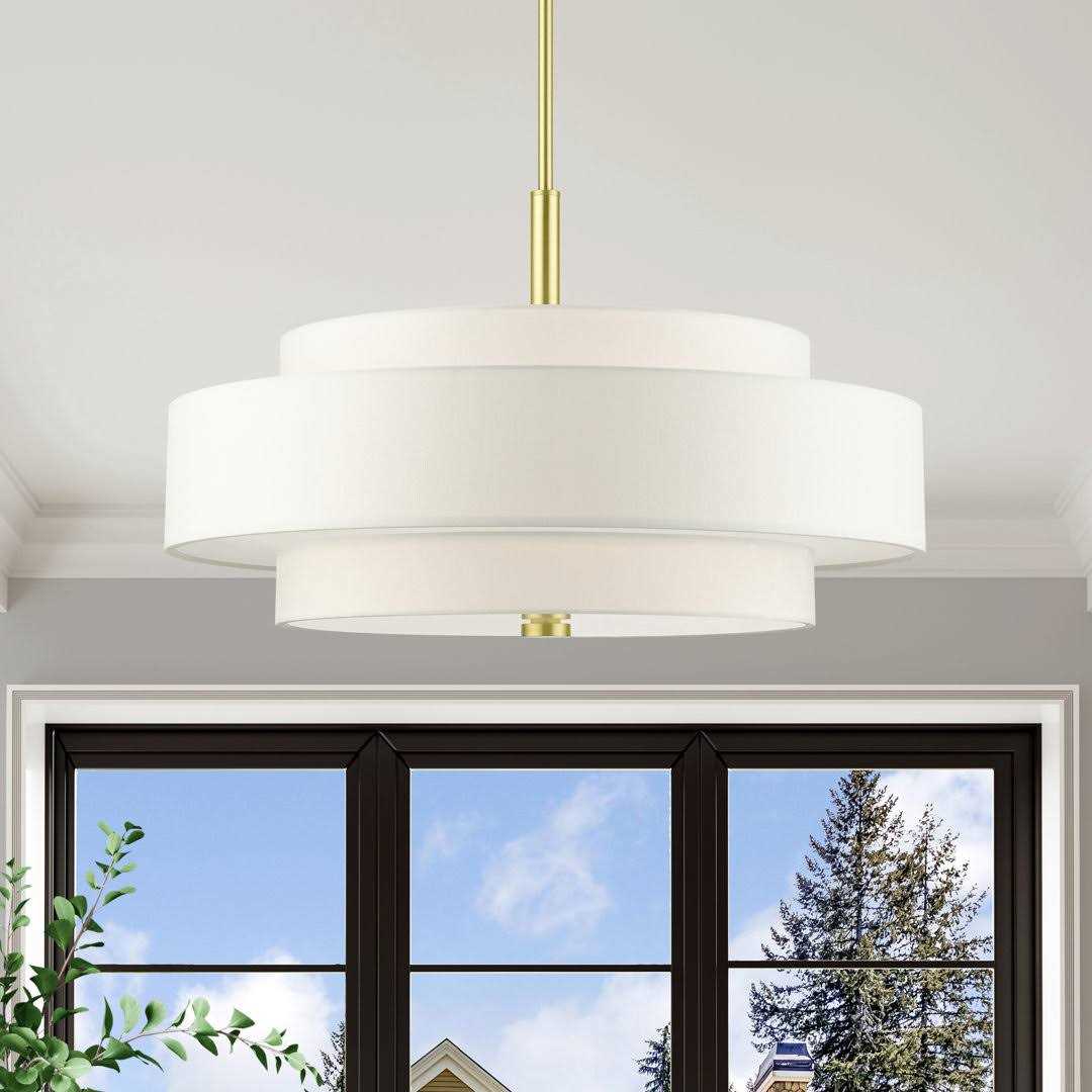 Illuminate your entryway or dining room in a streamlined style with this chandelier. This fixture is crafted from hand-forged steel and features a fabric drum shade. Plus, it’s safe to install in damp areas like above your bathtub. This chandelier has an adjustable height and is compatible with sloped ceilings to suit your space.
