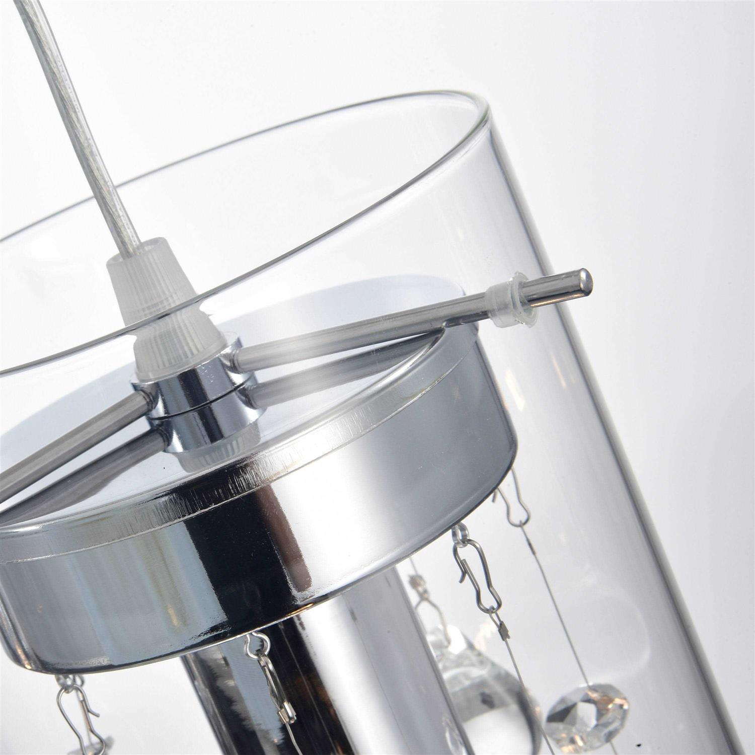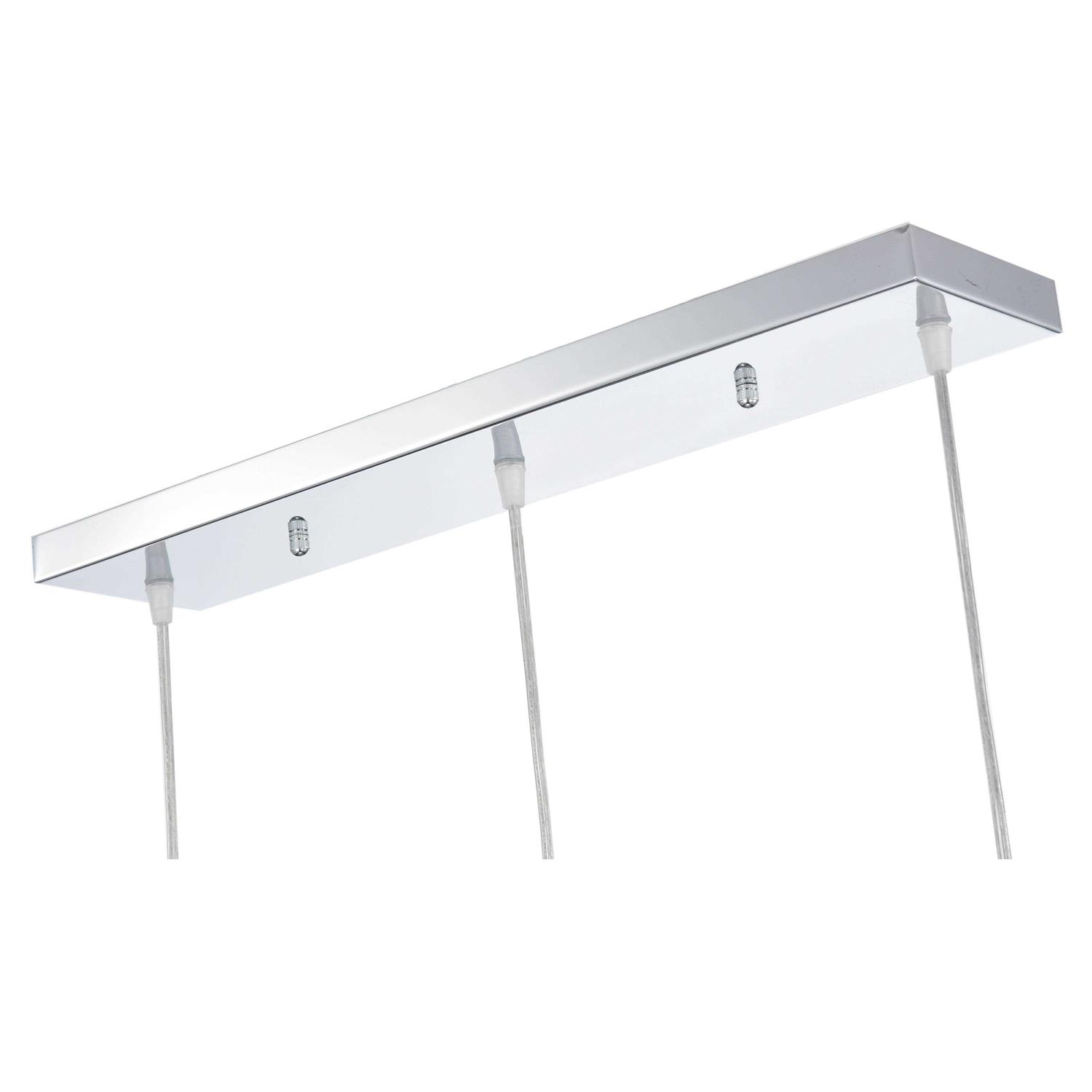 Add a touch of modern elegance to your kitchen with the Parnassus 3-Light Kitchen Island Cylinder Pendant. The clear glass and metal shades provide a sleek design that adds sophistication to any home. This pendant light is UL listed and dimmable, allowing you to have complete control over the ambiance of your space. Features: 3 lights for ample illumination Chrome finish for a modern look Hardwired power source for convenience Metal and glass primary materials for durability Clear shade color for a sleek design Downlight direction for focused lighting Maximum wattage of 60 for energy efficiency Fixture dimensions of 23.6″w x 4.7″d x 9.4″h Chain Length: 39.4″ Overall Hanging Length: 51.8″ Overall Weight: 8 lb. Assembly is required, and bulbs are not included. The bulb base is E26, and the voltage is 110V.