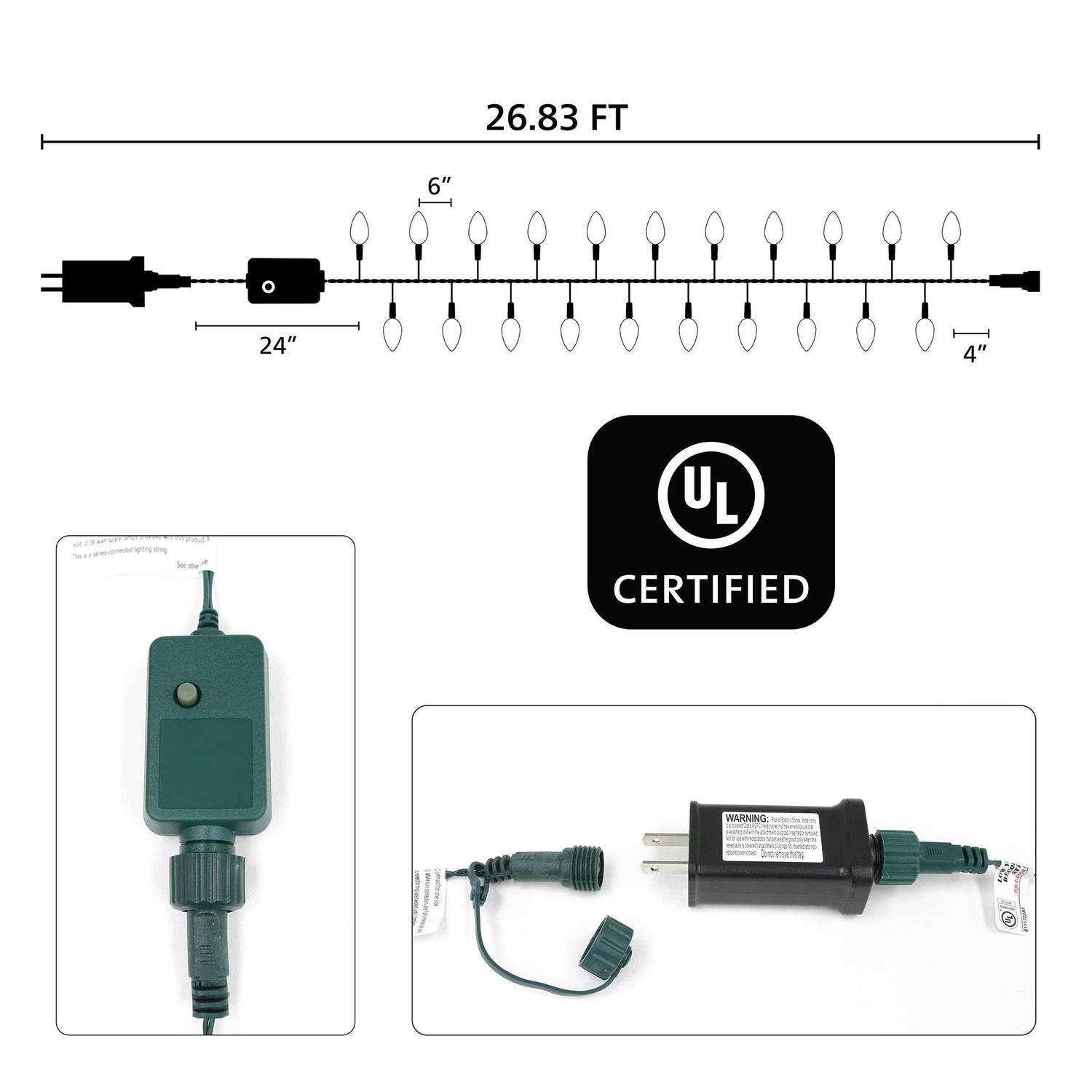 ENERGY-SAVING AND LONG-LASTING – LED lightbulbs are highly energy-efficient, lasting up to 20 times longer and with up to 82% energy savings compared to most incandescent sets! Each set is covered by a 5-year Guarantee WEATHER-PROOF – These Christmas light sets are weatherproof, making them the perfect lighting for your indoor or outdoor space. Use these decorative lights inside or outside without having to stress about damage from rain or snow. 8 BEAUTIFUL SETTINGS – Your holiday decorations will never be dull thanks to the 8 functions of these beautiful Christmas string lights. Choose from a variety of light settings: Steady White, Steady Multi, Fade White, Fade Multi, Flash White, Flash Multi, Fade between White and Multi, Flash between White and Multi LENGTH AND BULB COUNT – This string of Christmas lights has a 24.5-foot lighted length and a 24-inch lead-in. The 50 bulbs are each spaced 6 inches apart. Connect up to 3 strands of this light string for a total of 150 lights (see instruction sheets for steps to connect additional strands) SAFE AND MULTIPURPOSE – These light strings have cool running LED bulbs along with a replaceable fuse in the plug that prevents overload. Philips decorative lights have passed rigorous UL safety testing. Use these winter lights to decorate and illuminate any place indoors or outdoors – from windows to trees to fences and more!