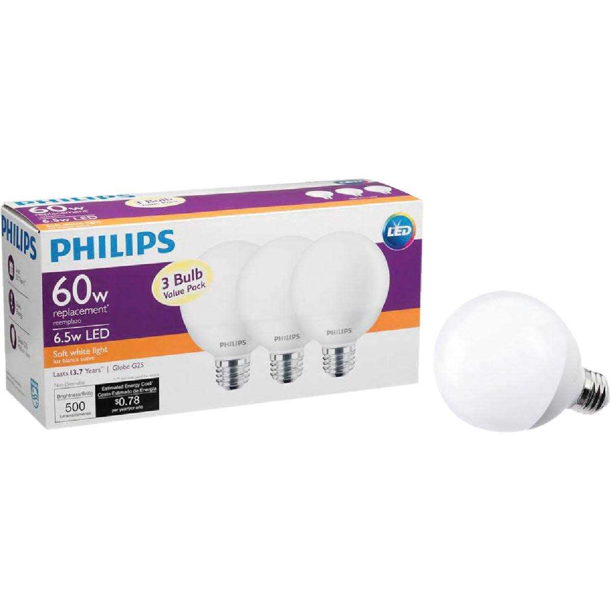 The Philips 60-Watt equivalent G25 LED bulb is specifically designed to light your home with a frosted, G-shaped glass bulbs. Enjoy comfortable natural like light with familiar shapes you know and love. These frosted glass LED bulbs use significantly less energy than traditional incandescent light bulbs. This frosted glass bulb has a medium (E26) base.