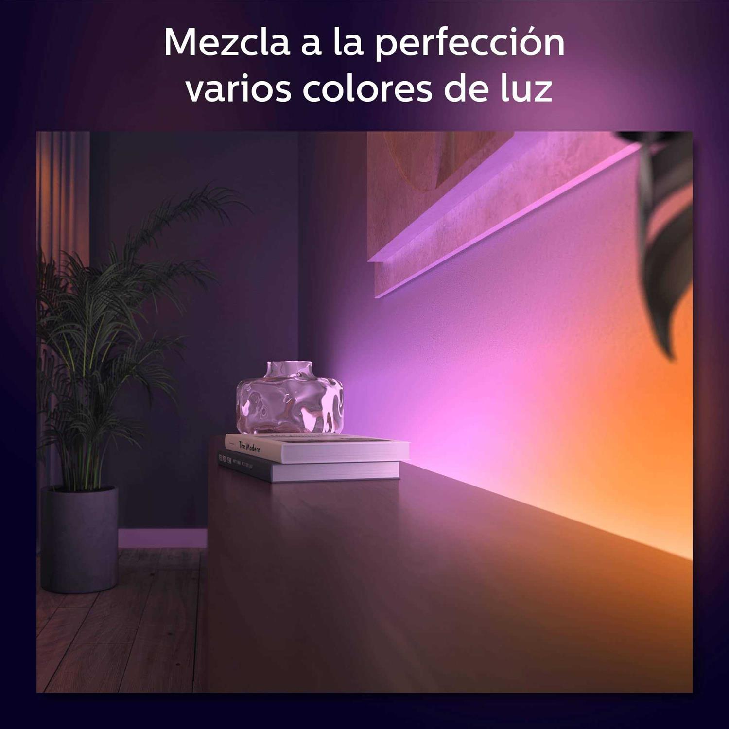 Retail $70 Our Price $35 Open Box About this item Extend the length of your Philips Hue Ambiance Gradient Bluetooth LED light strip with 40-inch extension, covering a larger area with a blend of colorful light. Use Bluetooth or connect to a Hue Bridge to unlock the full power of Hue, including automations and out-of-home control, sold separately. Seamlessly blend colors Get a seamless blend of multiple colors of light at the same time in a single LED strip. Colorful smart lighting Instantly set the mood for any occasion with 16 million colors. Unleash music with light Philips Hue and Spotify have teamed up with the first ever deep lighting and music integration that intertwines sight and sound. Now, you don’t just listen to music-you see it. Shape, cut and extend The gradient ambiance lightstrip extension lets you add on to the base (sold separately) and extend your lightstrip by up to 33 feet. Premium silicone sleeve The silicone sleeve has a matte, milky white finish that diffuses the light to create ambiance for every mood with no harsh reflections. Bluetooth compatible Control up to 10 lights instantly in a single room with Bluetooth and start using your Hue lights right out of the box. Do more with a Hue Bridge Connect to a Hue Bridge to unlock the full power of Hue, including automations and out-of-home control, sold separately.