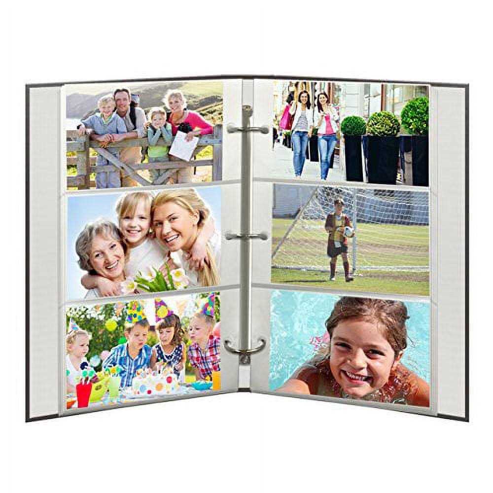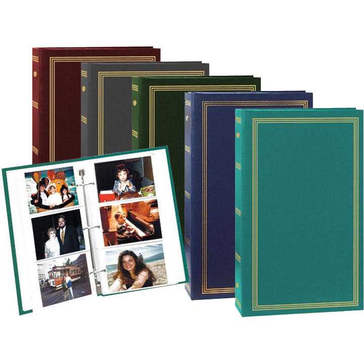 Leatherette cover with gold stamping Clear pockets with a white paper background 3-up album initially holds 300 photos up to 4″ x 6″ 3-ring binding accepts refills (Style No. RST-6) Archival, photo safe: acid, lignin and PVC free 4″ x 6″ pockets are optically clear with a white paper background. This 3-ring metal binder initially holds 300 prints and is refillable with style RST-6 pages.