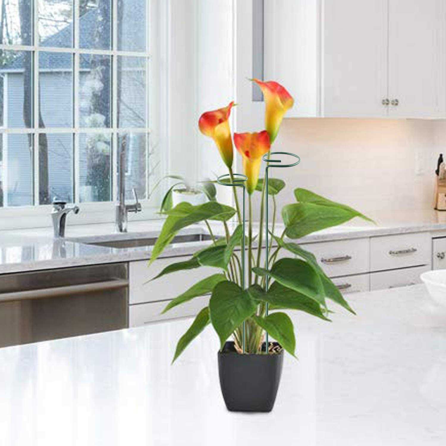 Plant support stakes are 15.9 inch long, inner diameter of the Hoop is about 2.5 inch, these stakes are strong to support plants. Fit for most fllowers and the plants with small stem, supported amaryllis well, like rose, peony, flowers, lily, tomatoes, vegetables, young tree, Narcissus, etc. tall stakes hold stems straight to keep. Used these to prop up the leaves of your monstera. All garden stakes are made of steel with green plastic coating, light weight, durable, hard to bend, not easy to fade and reusable, high quality garden accessories and plant care products. The plant support has graceful line, simple and elegant. great for keeping plants growing straightly, green colored metal stem allows for natural blend of stem and flower for seamless look. Plant supports are easy to use, open loop which allows the stem slip through the gap for putting the stem plant in without hurting the plant. The plant support cages effectively prop up stem plant to grow straightly and healthily, Designed For Small Plants, prevent stems from bending and entangling with each other, support flowers and leaves growing, avoid to fall and break off. Adjustable Garden Plant Twist Ties, 6.7 Inch Flexible Plastic Twist Ties Multi-Use for Secure Vine. This green tie is ideal for tying plants, vegetables and vines to stakes and trellises, and offer secure support for plant stems. It is very convenient and quick to collect and arrange the plant, and it will not hurt the hand.