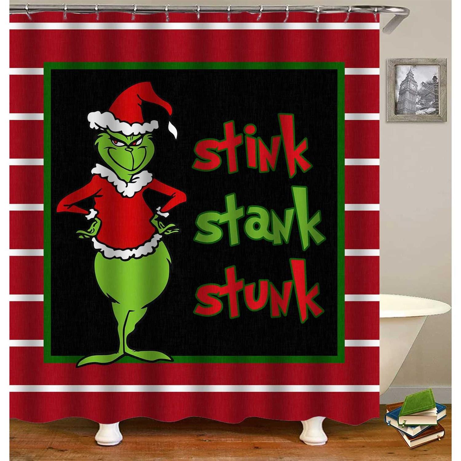 PLMZUOK Merry Grinchmas Bathroom Curtain Grinch Christmas Shower Curtain Winter Xmas Farmhouse Holiday Bathroom Decor 72×72 Inches