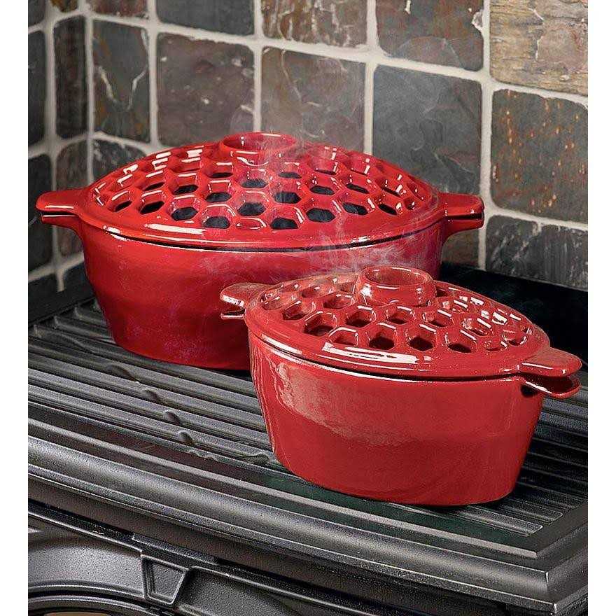 Place our exclusive 1.5 quart cast iron lattice Wood Stove Steamer on the stove top to help moisturize dry air. Quality cast iron with the best porcelain finish available means they won’t fade or flake. Cast iron 1.5 quart steamer, Porcelain finish prevents fading or flaking, Steamer helps moisturize dry air.