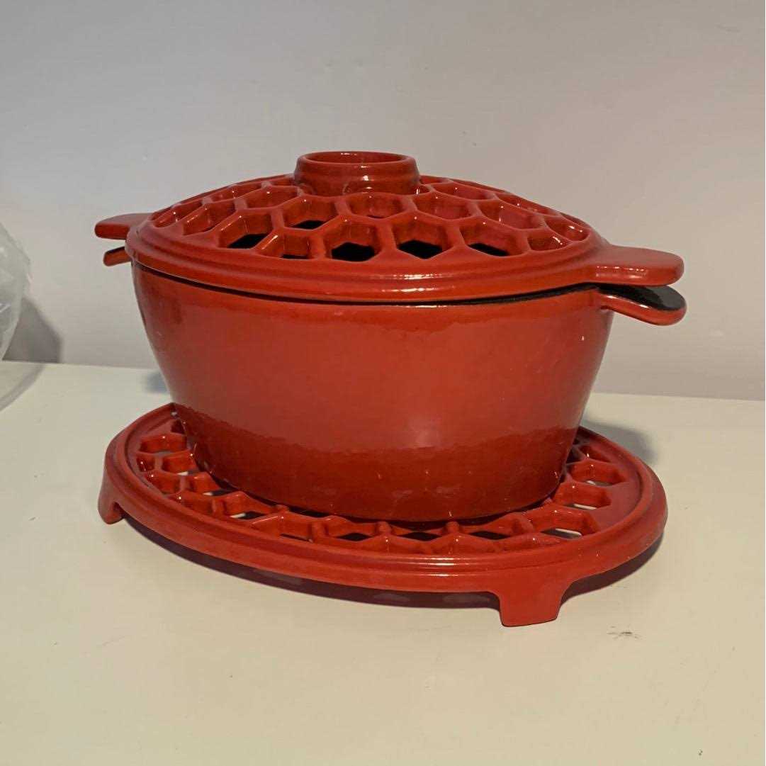 Plow & Hearth 1.5 QT. Cast Iron Lattice Wood Stove Steamer