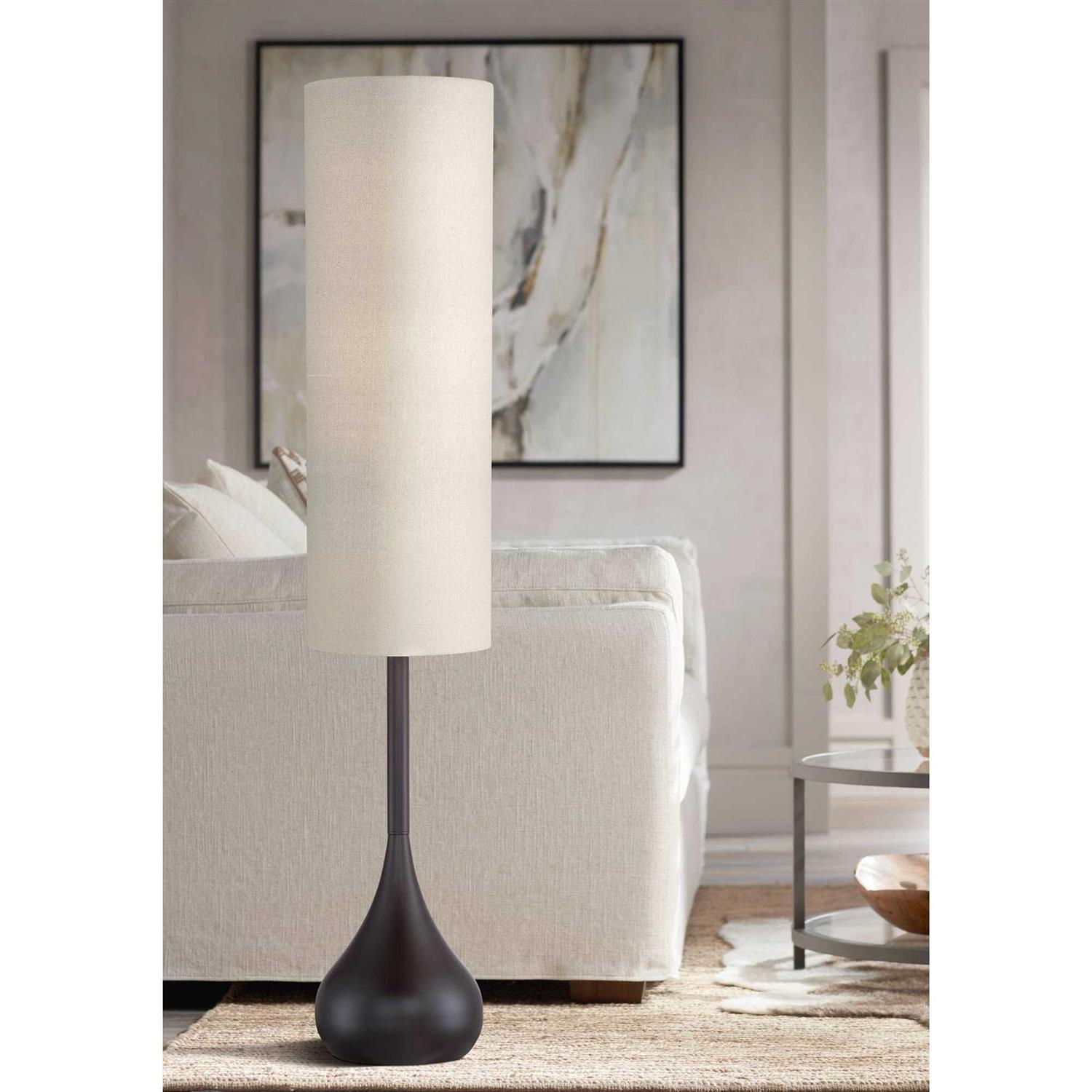 Possini Euro Design Mid Century Modern Floor Lamp 62 Tall Bronze Metal Droplet Off White Cream Cylinder Shade for Living Room Reading