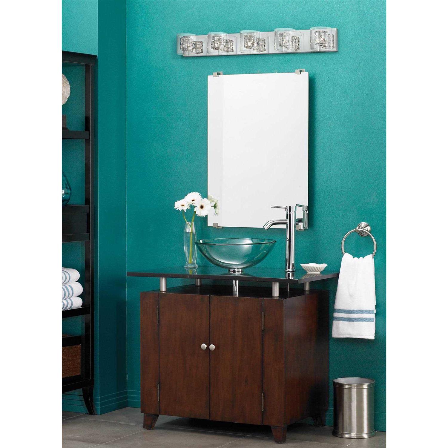 Illuminate a bath or living space with this contemporary five-light fixture from Possini Euro Design. This bathroom wall light comes in a sleek chrome finish that adds a modern shine. The clear glass cylinder shades have hand-wrapped aluminum wire decorations inside, adding an element of visual interest.