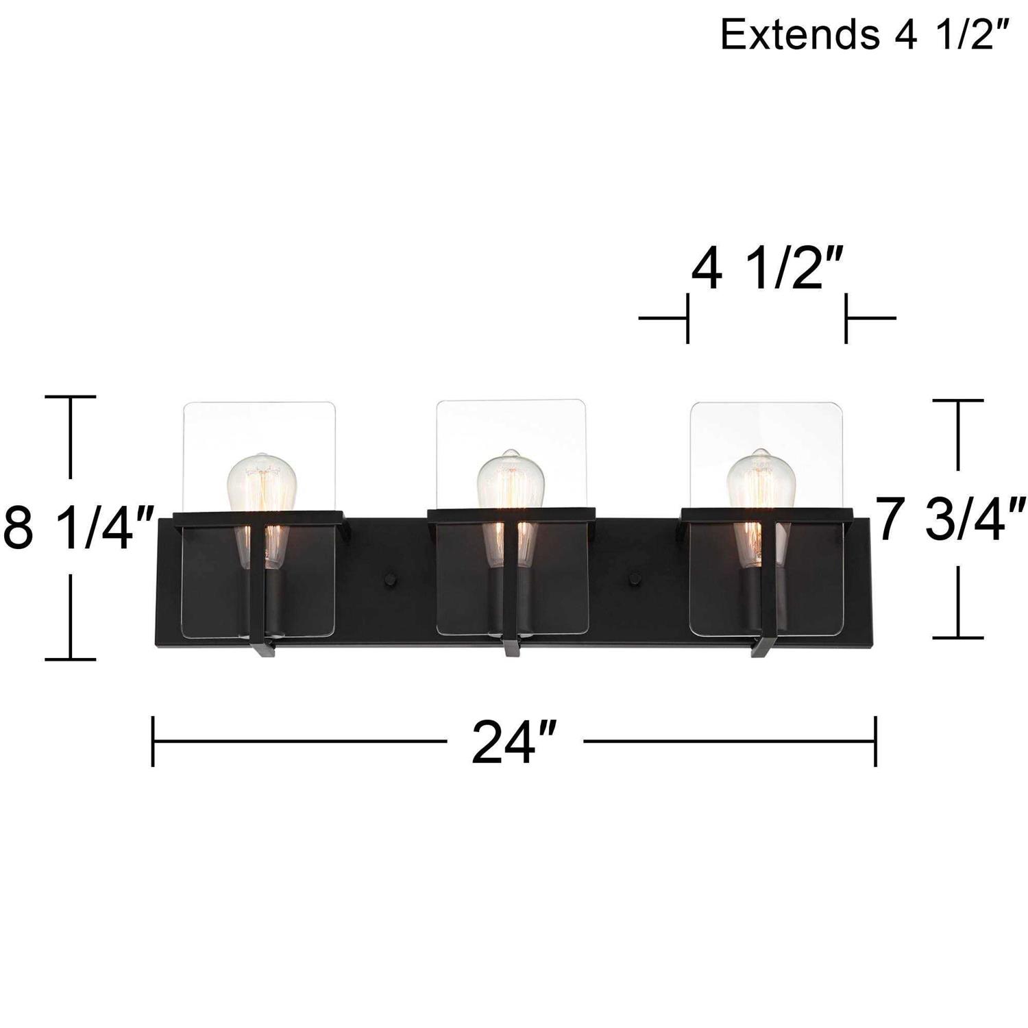 Possini Euro Design Trezza Modern Wall Light Matte Black Hardwire 24 3-Light Fixture Clear Glass Panels for Bedroom Bathroom Vanity Reading House