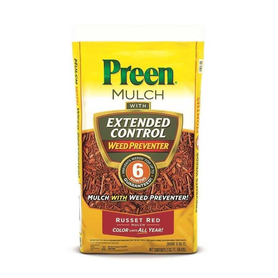 Preen Mulch with Extended Control Weed Preventer is the only landscape mulch that comes with added Preen weed pretended already mixed in. In one easy step, apply mulch and block weeds for up to 6 months – guaranteed! It’s available in three non-fade colors: russet red, chestnut brown, and midnight black – all guaranteed to stay colorfast all year.