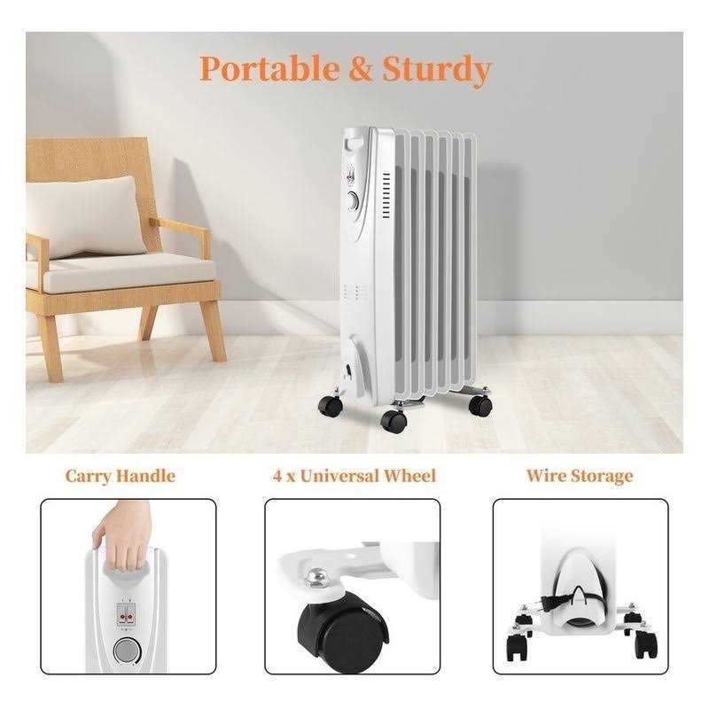 You will enjoy the quiet and soothing warmth of the Profusion Heat NBD-1Y Oil filled heater. 3 heat settings and an adjustable thermostat to customize the temperature. This unit is ready to go out of the box and has been pressure tested to assure operational safety. Additionally the unit is equipped with an internal overheat protection system. Indicator lights show you when the unit is operational. Casters allow for ease of mobility and the power cord can be wrapped and fastened thanks to the convenient cord storage base. Features Adjustable thermostat control 3 heat settings Portable Heaters Radiator Heaters Overheat protection system Pressure tested for safety Smooth castors for easy movement Cord storage Safety tip-over switchSpecifications