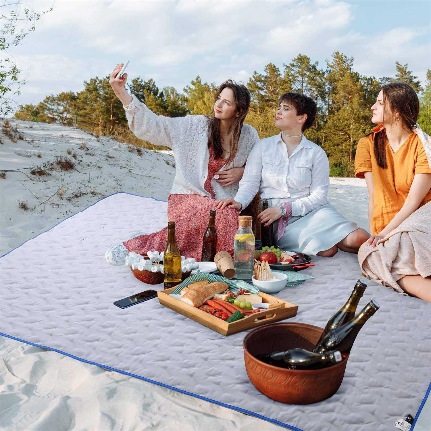 【HIGH-QUALITY OUTDOOR CAMPING BLANKET】Our outdoor camping blanket is made of three layers of the highest quality materials. The outermost layer is 80gsm full polyester waterproof fabric (Taft), the middle layer is 80gsm washed cotton, and the innermost layer is 100gsm sanded fabric. The waterproof level is 1000 water pressure. Make sure you stay dry and warm while camping 【MULTIFUNCTIONAL BLANKET】Compared with other ordinary size blankets (75 x 55 inches), our oversized (82 x 55 inches) stadium blanket is more in line with the tall figure of Americans and is very suitable for outdoor activities, such as sports events, picnics, and camping; It can also be used as a protective cover indoors or in the vehicle. Don’t worry about any wet stains on your car, sofa, and bed. 【HOODED DESIGN】This waterproof blanket has a hood that can be stuffed into the blanket. When it begins to rain, you can use it as a raincoat. Just put on a hood to cover your whole body and free your hands to deal with your troubles. When it doesn’t rain, it can be laid on the grass as a picnic mat, which can accommodate 3-4 adults 【EASY TO CARRY AND STORE】Our extra large picnic blanket can be easily folded. The folded size is only 7.8*14.5 inches. You can store it in any corner of your home or in the trunk of your car. Its weight is only 1.6lb, equivalent to the weight of a bottle of water. It can also be machine washed to free your hands and easily clean those inevitable messy situations 【EASY TO CLEAN】The brushed stadium blanket adopts ultrasonic quilting technology, which is strong and durable, easy to clean, easy to shake, and wipe away dirt, soil, and sand. It can also be machine washed to free your hands and easily clean those inevitable messy situations
