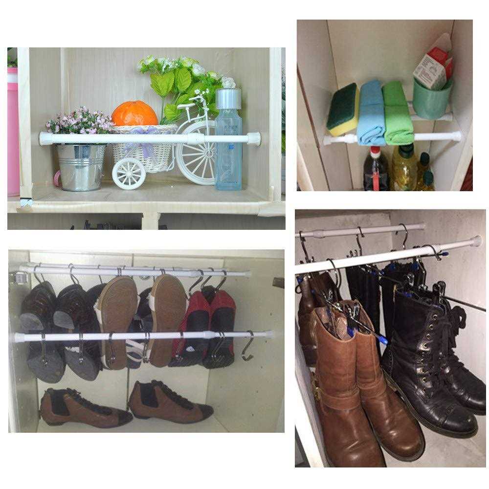 Shower Curtain Rods by qinsou. Details:Specifications: Material: high-carbon steel with rust-proof lacquer. Diameter: 1.3 cm/ 0.5 inch Adjustable length: 55-90cm/ 21.6-35.4 inch. Application: door curtain rod, clothes pole, shoes rack, clothes pole, coat hanger, DIY projects, etc. Use them in the fridge to separate beverages and keep the cans or bottles from rolling around. It also can use inside various cabinets in travel trailer/RV to keep things from toppling or shifting. Ideal for hanging kitchen stuff. Package includes: 6 x Tension rods How to install tension rod: Unscrew the inner rotating rod to required length, 3-5cm longer than actual shortest distance between two sides of objects, tilt the rod between two sides of objects slightly, make the rod parallel with floor gently, propped up by spring finally. Warm note: 1. There may be small error in size for manual measurements. 2. The friction of the wall and the extension of the rod will affect the use.Generally speaking,the more…