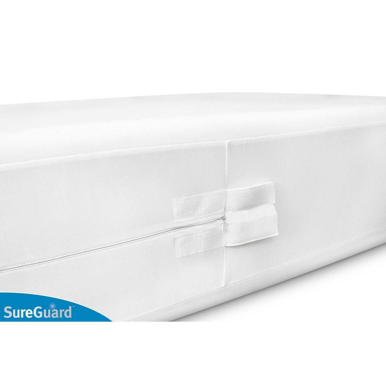 100% Waterproof – Six-sided premium protection against everyday liquids and stains; 10-year quality guarantee Bed Bug Proof – Super fine zipper with Invisi-Zip and SureSeal technology completely seals off the box spring from bed bugs – use with a SureGuard Mattress Encasement Hypoallergenic – Keeps Your Box Spring Clean & Fresh – Blocks dust mites, mold, mildew, pollen and pet dander on all sides. Soft & Noiseless – Smooth stretch-knit surface hugs to your box-spring like a glove – Free from Vinyl, PVC, Phthalates, fire retardants and other toxic chemicals Queen (60 in x 80 in) – Fits 8 to 11 inches deep; Zippered Box Spring Cover – Machine wash and dry. Independently lab tested and GREENGUARD Gold certified. Want the Ultimate Protection for Your Box Spring? Look No Further than a SureGuard Box Spring Encasement Queen Size: 60 x 80 inches. 100% Waterproof Provides six-sided premium protection against liquids and stains – keeping the entire box spring fresh and clean. Bed Bug Proof Super fine zipper with Invisi-Zip and SureSeal technology completely seals off your box-spring from bed bugs – best used with a SureGuard Mattress Encasement and SureGuard Pillow Protectors. Allergy Relief Blocks dust mites, mold, mildew, pollen and pet dander – prolonging the life of your boxspring. Soft and Noiseless The smooth stretch-knit surface hugs to your box-spring like a glove – Fits 8 to 11 inches deep. Easy to Install Includes step-by-step instructions and free adhesive felt pads to cover any sharp edges on your bed frame. Simple to Clean Machine wash with cool water. Tumble dry low heat or air dry. Do not bleach, iron, or dry clean. Superior Quality Each zippered box spring cover is made with the finest materials and expert workmanship to ensure it protects your box spring, wash after wash. Independently lab tested and GREENGUARD Gold certified. Free from Vinyl, PVC, Phthalate. Rest Assured with SureGuard.