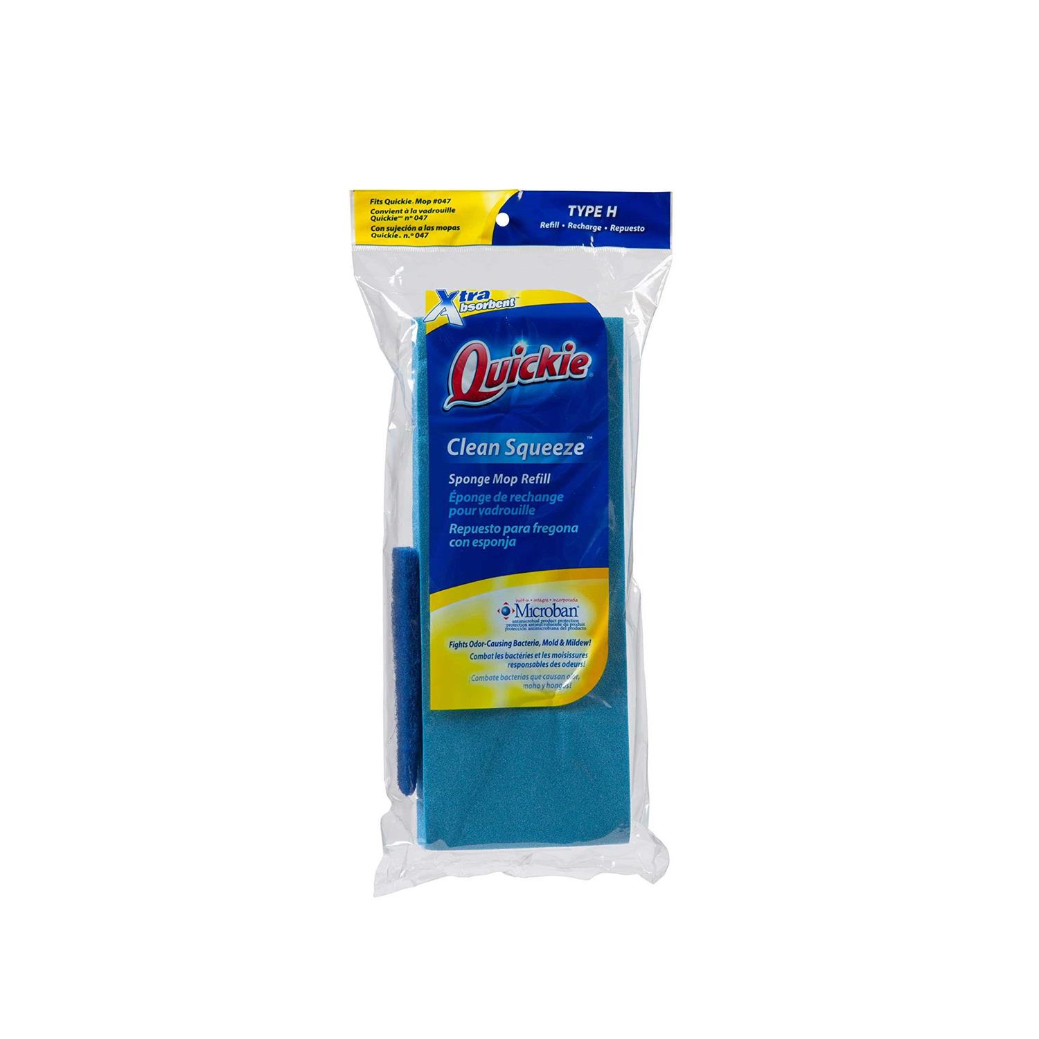 Refill fits Quickie mop model 047MB-4 and 047-4 Scrubber strip included Works well on tile, grout and any other uneven floor surface 9.13 inches x 3.56 inches x 1.89 inches Type H refill The Quickie Sponge Mop Refill cleans more floor in less time than other sponge mops. The 11-inch wide sponge is made for the professional cleaner. A dual layered cellulose sponge, maximizes the absorbency you need for a quick, thorough clean. The cellulose provides deeper cleaning on hard flooring surfaces and absorbs more water off the floor with fewer mop passes, meaning your floors dry faster! Not to mention, this mop works well on tile, grout and any other uneven floor surface. The patented built-in front scrubber helps remove scuff marks and stubborn stains. A butterfly squeezing action feature designed with oversized nylon rollers makes mop wringing easier than ever before. Quickie designs, manufactures and distributes over 300 cleaning products for traditional in-home use as well as contractor and DIY grade applications. The product line includes mops, brooms, dusters, dustpans, brushes, buckets and other supplies.