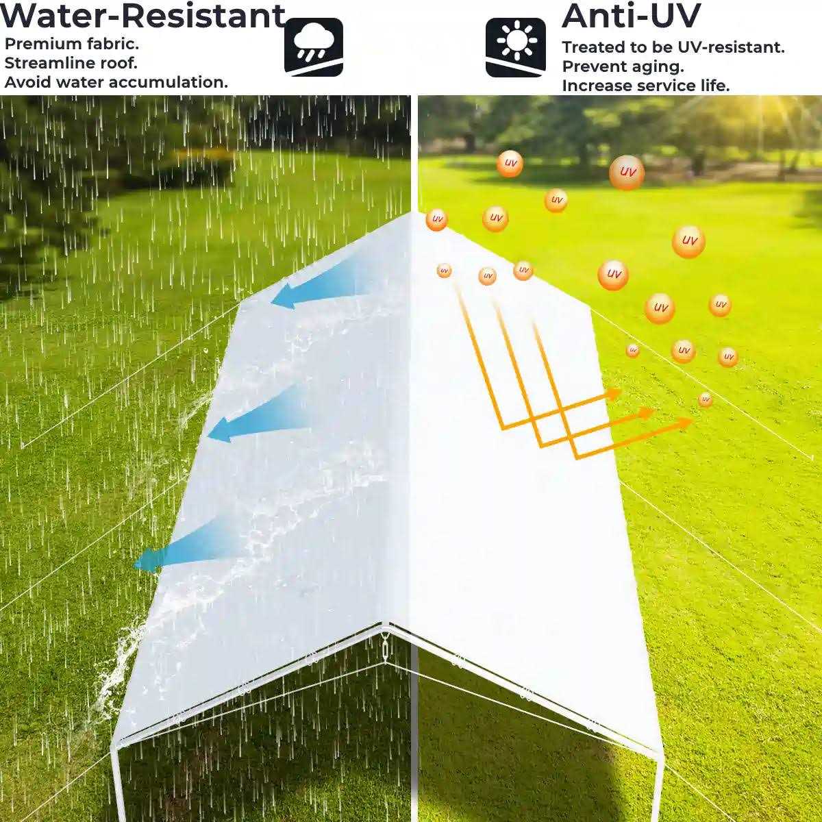 This is a great, portable heavy-duty carport for temporary use. It is made of waterproof and UV resistant extra-thick polyethylene fabric and has a sturdy construction.