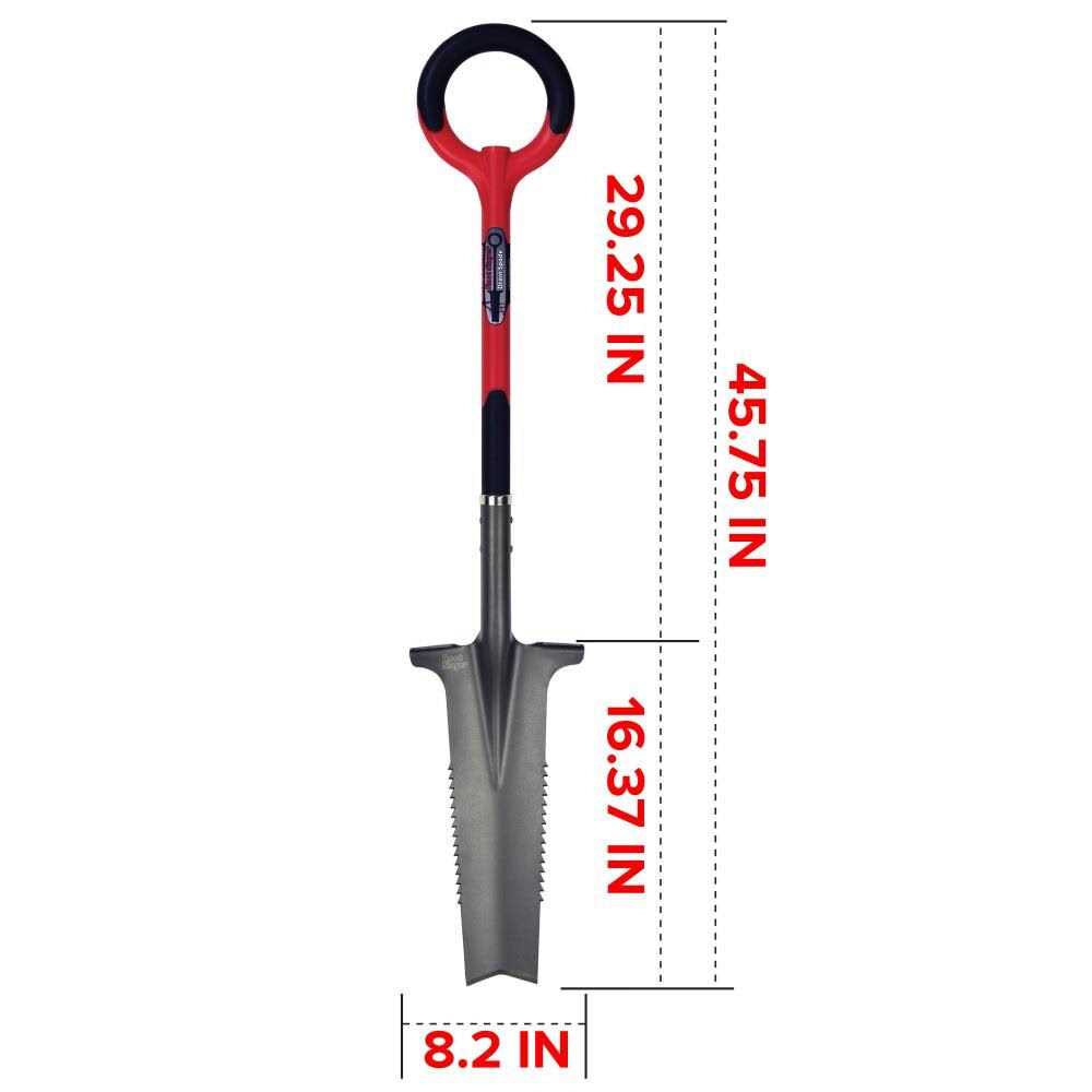 Extra long and narrow with inverted, V-shaped cutting tip and specially designed teeth rip through dirt and roots with ease; ideal for digging a trench or cleaning out a drainage ditch. Blade made of powder-coated carbon steel. Shaft made of resin-encased carbon steel and non-latex grips at top. Regularly clean and sharpen blade to maintain quality and performance of the blade. Radius Garden Root Slayer 29.25-in Composite Drain Spade | 22811