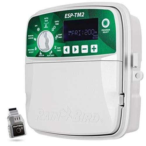 Controls 6 sprinkler zones, Quick to Install, Suitable for indoor or outdoor installations, Factory installed 6′ outdoor rated power cord for your convenience Simple to Program. Quickly program a schedule in just 3 steps. NEW large back-lit LCD display for improved visibility in low-light and direct sunlight conditions WiFi Connectivity Advanced Features. Contractor Default allows you to easily save and restore your custom schedule. Delay Watering up to 14 days and automatically resume watering after the set delay has elapsed The Wifi operates like a wireless remote control for your irrigation system while onsite or an internet-based monitoring and control system when offsite Automatic weather adjustments provide daily run time changes, saving up to 50% in water The ESP-TM2 irrigation controller is the perfect option for basic residential solutions. Building upon Rain Bird’s legacy of The Intelligent Use of Water, this controller offers simple water saving features that you will actually use. With the flexibility of 3 programs and 4 start times available per program, you can tailor your watering schedule to your landscape’s needs. The ESP-TM2 provides the Extra Simple Programming interface you are familiar with in a controller that is built to last! Best of all, the ESP-TM2 comes with a new LNK WiFi Module to make the system mobile friendly without having to replace the entire unit.