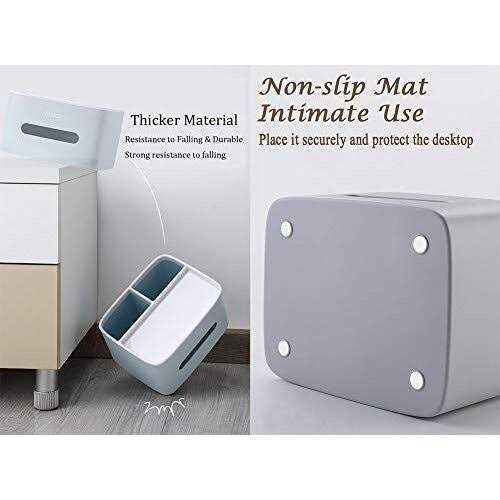Made of high quality ABS, PP material. Sturdy and durable, practical and fashionable. Thicker material, strong resistance to falling. SIZE: Tissues box Size is 20.5 x 16 x 12cm. Suitable for tissue paper size within length 19cm, width 9cm. There are 4 Non-Slip mets under the tissue holder, to place it securely and protect the desktop. Multifunctional DESIGN: A stylish and practical way to store your tissues, multi divide compartments holder for pen pencil, remote control, Kindle, smart phone, iPad, etc, to store your Equipment conveniently while keeping them easily accessible. Convenient and environment friendly; Stylish designed, ideal for home, bedroom, living room, dressers and office use. br Rain House multifunction tissue holder box, use high quality ABS PP material, durable and resistance to falling. br With 4 Non-Slip mets under the tissue holder, to place it securely and protect the desktop. br A stylish way to store your facial paper, with multi divide compartments to store your Equipment conveniently while keeping them easily accessible. This Tissue box cover case is an ideal decoration for your home, bedroom, living room, dressers and office use. br br Specifications br Material: ABS, PP br Net weight: 452g br Color: Pink, Blue, Gray br Size: 20.5 x 16 x 12cm br Kindly Noted: This tissue dispenser is suitable for small size tissue paper /br