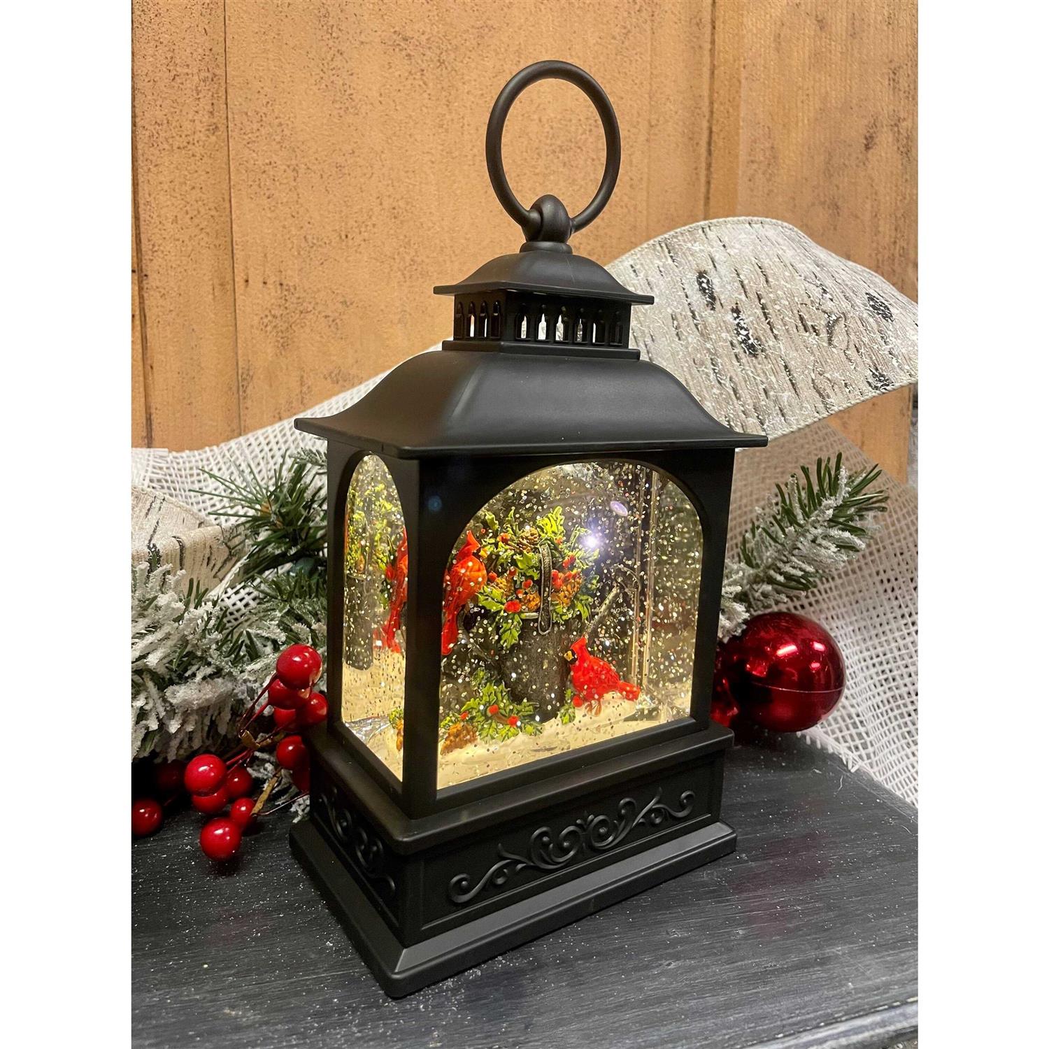 RAZ Imports Cardinals on Watering Can Lighted Water Lantern is a fun and festive decoration for the winter and holiday seasons. Made of plastic and resin, this water lantern features cardinals perched on a watering can filled with holly and berries that sparkles with glitter when shaken. Its six-hour timer repeats every 18 hours. Great to place on mantels, tables, shelves, and any other surface that needs some added decoration. You can pair this lantern with other winter and holiday decor to create a seasonal display. Measures 9.75 in. and requires 3 AA batteries.