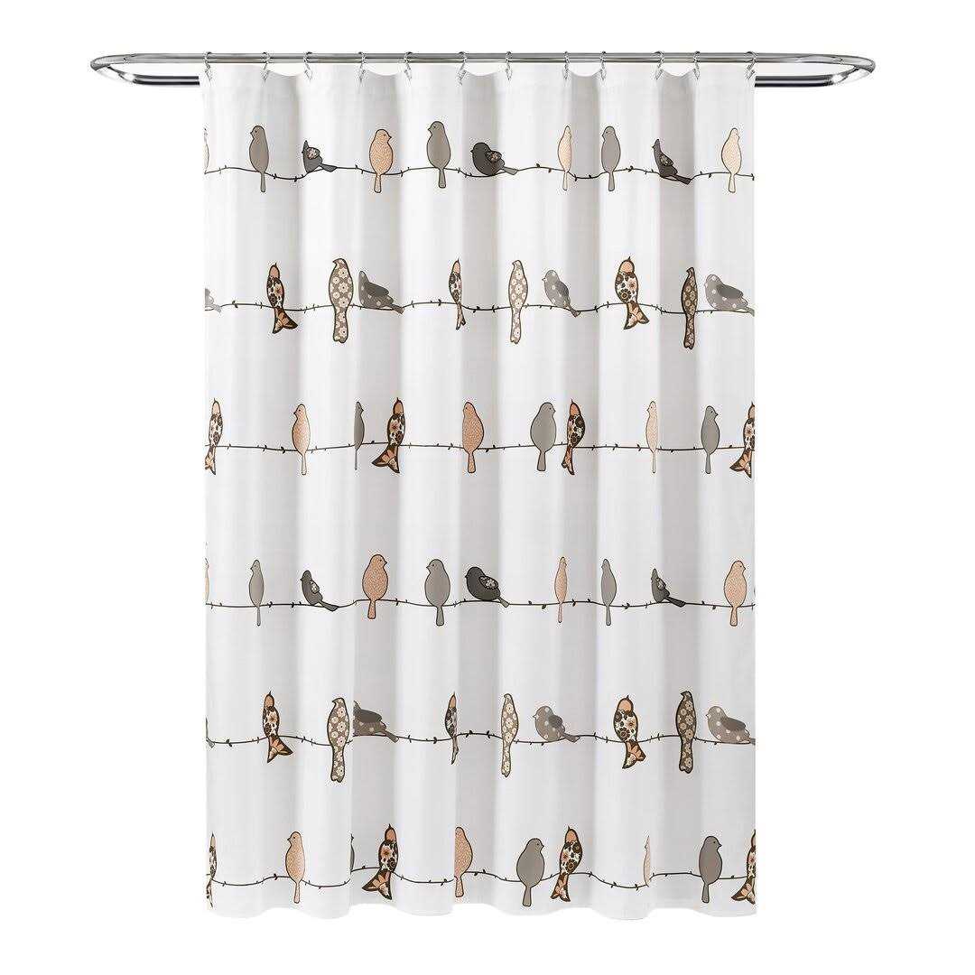 A breathable flexible alternative to rigid doors shower curtains bring increased privacy to your bathroom at a budget-friendly price. Plus they do what doors can’t: wrap around a freestanding bathtub Perfect for a touch of cottage charm this piece features a motif of brightly patterned birds perched on a wire. Woven from 100% polyester this piece is machine washable so a quick cycle is all it takes to give it a pick-me-up. Before you shower yourself in style make sure to set up your favorite hooks as none are included.