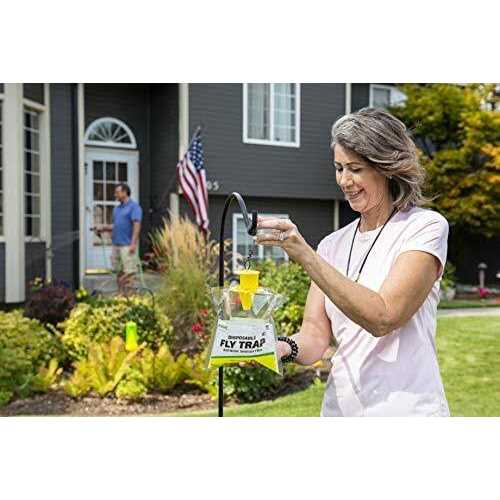The RESCUE! Non-Toxic Disposable Fly Trap catches common nuisance or filth flies, hundreds of the most prevalent species including house flies, false stable flies, blow flies, blue and green bottle flies, flesh flies, face flies and many others. Inside the trap is a bait that flies find irresistible. This attractant is comprised of food and feed ingredients, and other food flavorings generally recognized as safe. The attractant dissolves and activates when water is added to the bag. Lured by the scent, flies enter the trap through the yellow top cap and drown in the water. Has been proven to catch up to 20,000 flies. RESCUE!’ s goal is to design, manufacture and market the safest, most effective pest control solutions available. Our products are the result of exhaustive and ongoing research and development, decades of experience and a commitment to solutions that respect the environment without sacricing results. Established in 1982, RESCUE! pest management products have never used poisons or toxicants to kill pest insects.