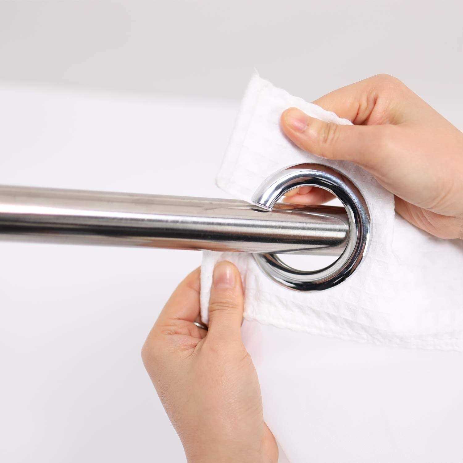 This shower curtain designed with “Split Rings” that let you hang them easily. No need to buy hooks and no need to remove the rod Package Included: 1 Shower curtain and 1 fabric snap-on replacement Liner HOTEL QUALITY: The shower curtain and liner are made with high quality Fabric, 200gsm heavy weight to keep it in place. It allows you to hang the curtain easily and quickly. You don’t even need to remove the shower rod. Because the built in flex ring pop right over it. A clear window along the top lets light in and allows you to see out while maintaining privacy. Water repellent treatment can repel the water inside tub.