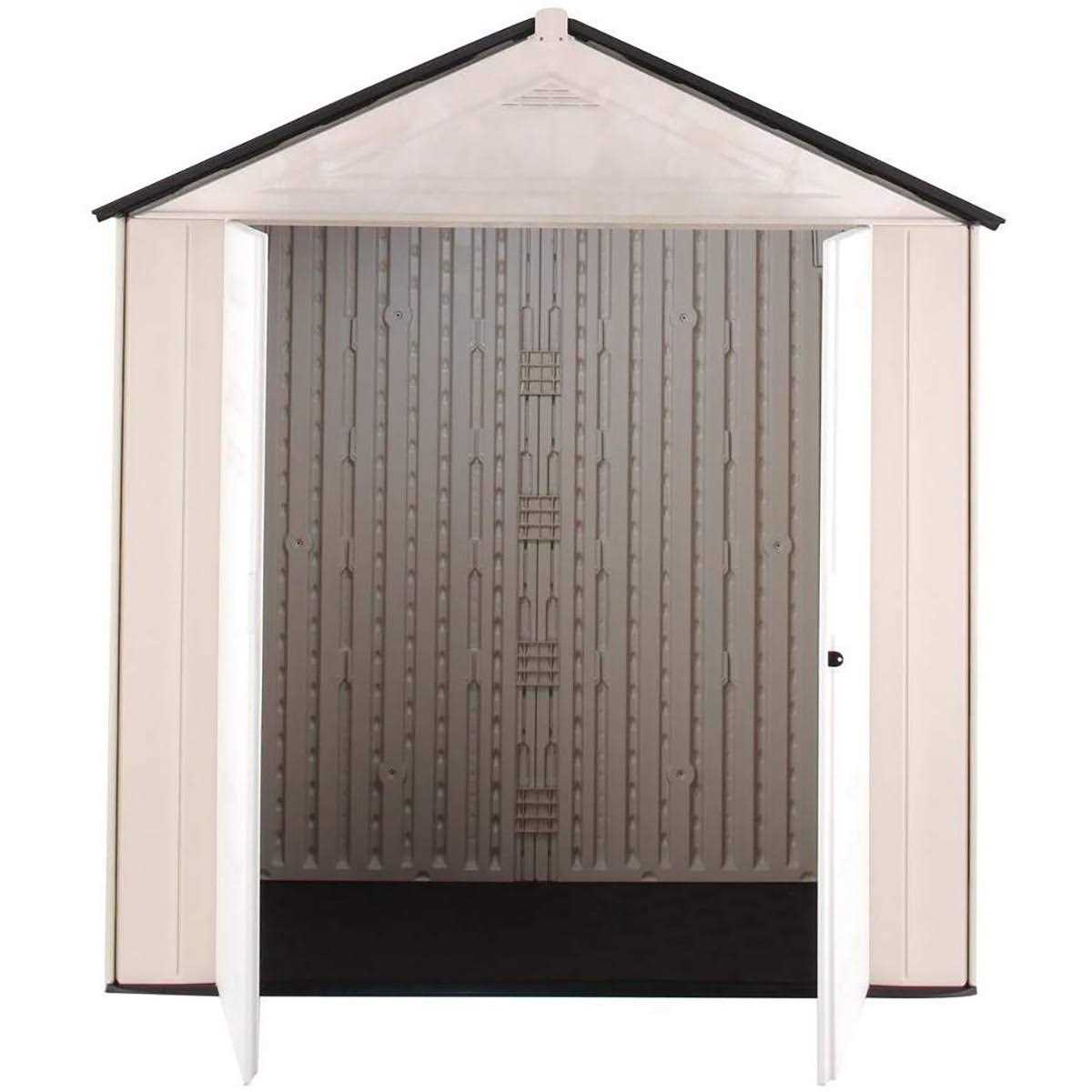 Store all of your outdoor items with the sturdy, low-profile, Rubbermaid Outdoor Storage 7×3.5 ft Shed. This weather-resistant outdoor storage shed is made of resin and has double-wall construction, a premium wall design that offers more structural integrity and security. The Rubbermaid Outdoor Storage 7×3.5 ft Shed’s dimensions are 87.2” x 46” x 17.8” and has a 147 cubic feet capacity. It has ample amount of space to preserve hard to store items such as lawn mowers, generators, and bicycles. In addition, you can hang tool racks in this storage shed allowing for greater organization of your stored items. A heavy-duty, impact resistant floor is included, and the doors are lockable. This sandstone outdoor storage 7×3.5 ft cabinet will protect your possessions from sun-damage and moisture and won’t rust or rot, unlike metal or wooden sheds. Assembly is required and hardware is included.