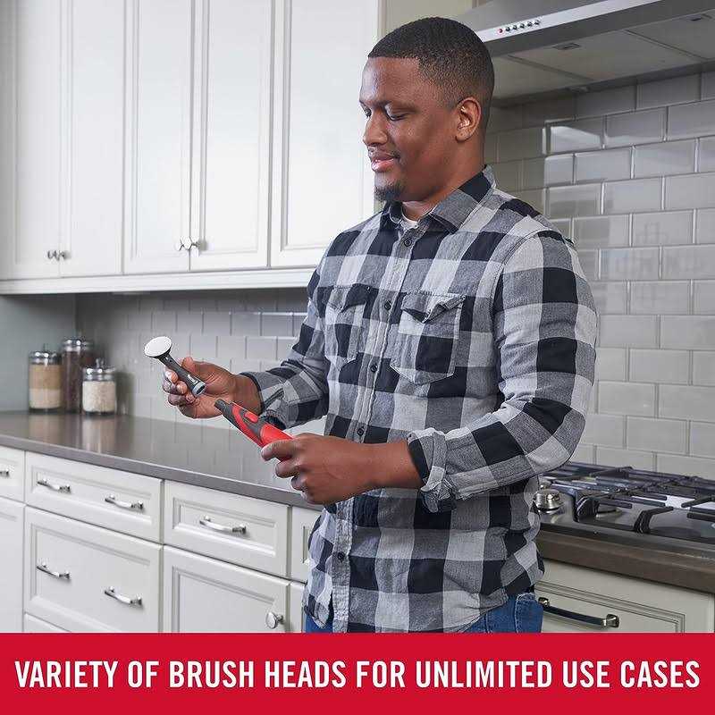 WHAT’S INCLUDED: (1) Powered Handle, (1) XL Head, (1) Large Head, (1) Soft Bristle Brush, (1) Grout Brush, (1) Velcro Head, (6) Scrubber Pad refills, (6) Microfiber Pad refills, and (4) AA batteries INTENSE CLEANING POWER: Handheld powerful oscillating head scrubs 60 times per second, quickly and effectively removing everyday grime and restoring surfaces SAVE TIME AND ENERGY: Designed to scrub up to 2x faster than manual scrubbing, reducing strain and giving you back time in your day WATER RESISTANT PERFORMANCE: Robust water resistance for reliability in any cleaning situation INDUSTRY-LEADING QUALITY: Rubbermaid is committed to delivering long-lasting, dependable products that help simplify everyday tasks HOME CLEANING ESSENTIAL: Perfect for tight spaces around the house; faucets, drains, sink, tile, and grout for the bathroom and appliances, counters, stove-tops, and microwaves in the kitchen TAKE THE CLEAN OUTDOORS: Tackle cleaning projects outside; including the patio grill and furniture, car trim, tires, and wheels, and your golf clubs and balls KEEP SHOES SPOTLESS: Polish and deep clean sneakers, shoes, and boots; keeps them lasting longer and looking like new