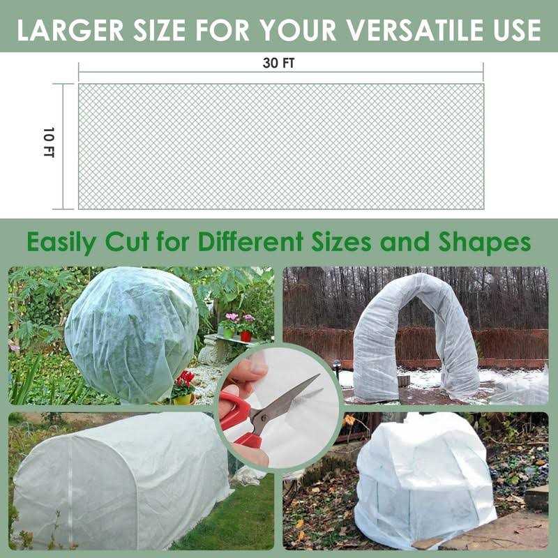 【 10 ft x 30 ft 0.95 oz/yd² Plant Covers】 Large size allows you to cut it into different sizes for different purposes. You can use whole pieces garden fabric plant blankets to cover and protect whole garden plots, or you can cut them into small pieces for wrapping fruit trees, potted plants, ornamental crops. The ultra-fine mesh structure lets air, light and moisture pass through. 【Eco-Friendly Non-Woven Polypropylene Fabric】 Reusable soft durable fabric is plant friendly, no harm to plant growing. Light, breathable and durable, reusable, and easy to store. 【Easy to Install】 You can cover plants directly with the plant frost blankets and secure them with soil, stones, or staples to prevent them from blowing away. You can also use them with garden hoops to make room for plants or vegetables to breathe and grow. 【Needed All Year Round】 Plant covers freeze protection is ideal for extending the growing season into early spring and late fall.Against freeze, frost and other cold weather during winter, but also can protect your plants from strong sun, insect and birds during spring and summer