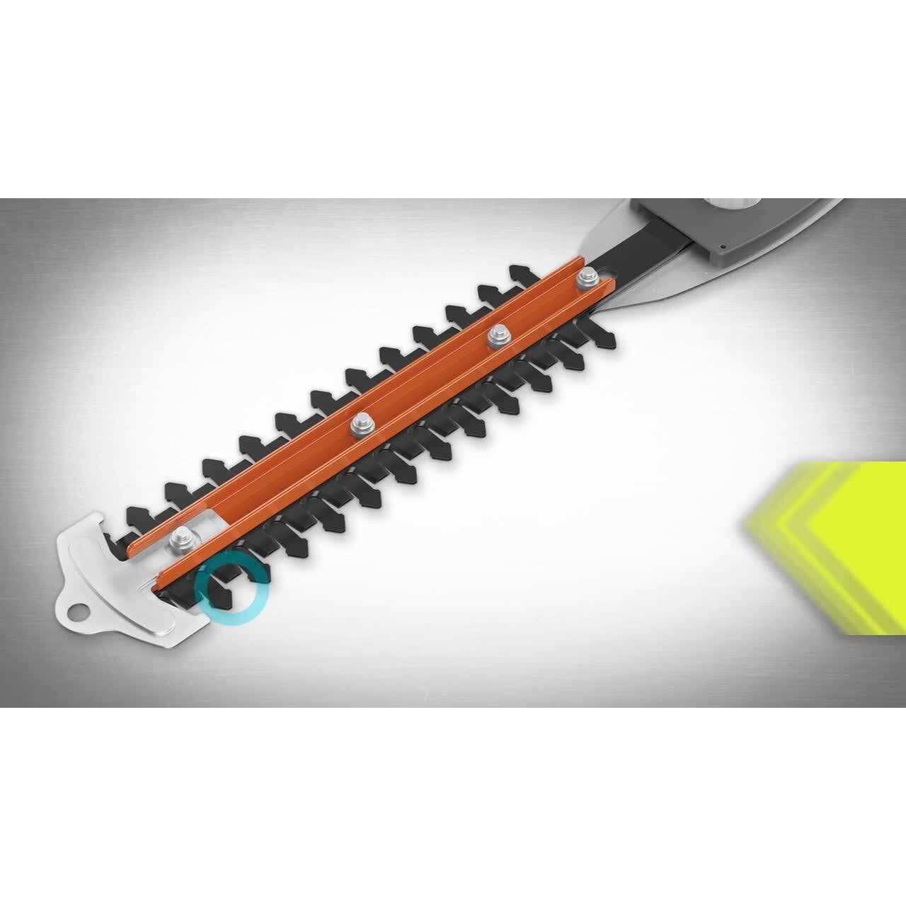 Expand your 18V ONE+ System with the 18V ONE+ Shear/Shrubber. The powerful motor provides 1,200 strokes per minute for detailed shrub trimming. Enjoy up to 1 hour and 37 minutes of runtime using an 18V ONE+ 2Ah battery. Tackle smaller hedges, shrubs and bushes with precision using the 8″ shrubber with a 5/16″ cut capacity. Quickly transition from a shrubber to a shear in seconds with tool-free blade change. Trim patches of grass and weeds in tight areas that your mower can’t reach like around a mailbox or flower bed with the 4″ grass shearing blade. Experience exceptional performance with the pull of a trigger, without the hassle of gas or cords. With dual action blades, you can power through hedges with reduced vibration and less fatigue. The compact and lightweight design reduces fatigue and increases control while working in delicate areas. Plus, this shear/shrubber is compatible with the shear/shrubber caddy, allowing upright cutting for added comfort and added accessibility (caddy sold sepatately). Best of all, it’s part of the RYOBI ONE+ system – Any 18V ONE+ battery works with any 18V ONE+ product. Battery and charger sold separately.