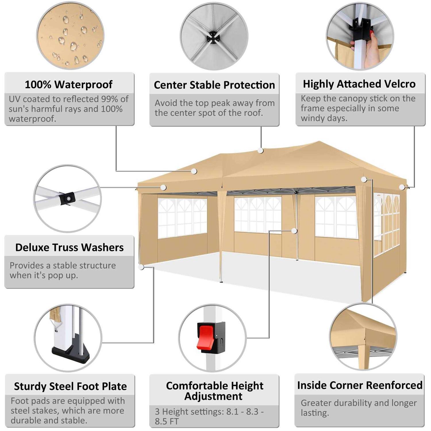 Sanopy 10′ x 20′ EZ Pop Up Canopy Tent Party Tent Outdoor Event Instant Tent Gazebo with 6 Removable Sidewalls Carry Bag