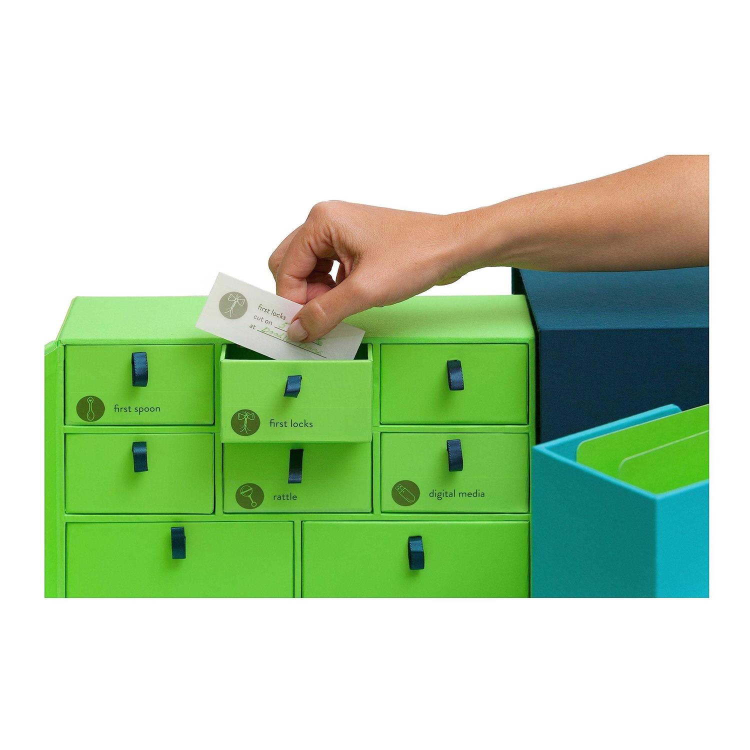 Ocean – The years go by so fast, and humble yet precious objects scatter as your children grow. Some daymaybe not the first time they ask for the car keys, but certainly when they have their first childtheyll remember them, and you will, too. Store cherished keepsakes like hospital name bracelets, lost teeth, and favorite binkies safely and all in one place with this library-style organizer using its illustrated labels, acid-free drawers, vertical files, and tiny envelopes. A cloth-covered casing resembling a museum-quality book makes this design an attractive addition to wherever you display your favorite collectibles. Made in China.