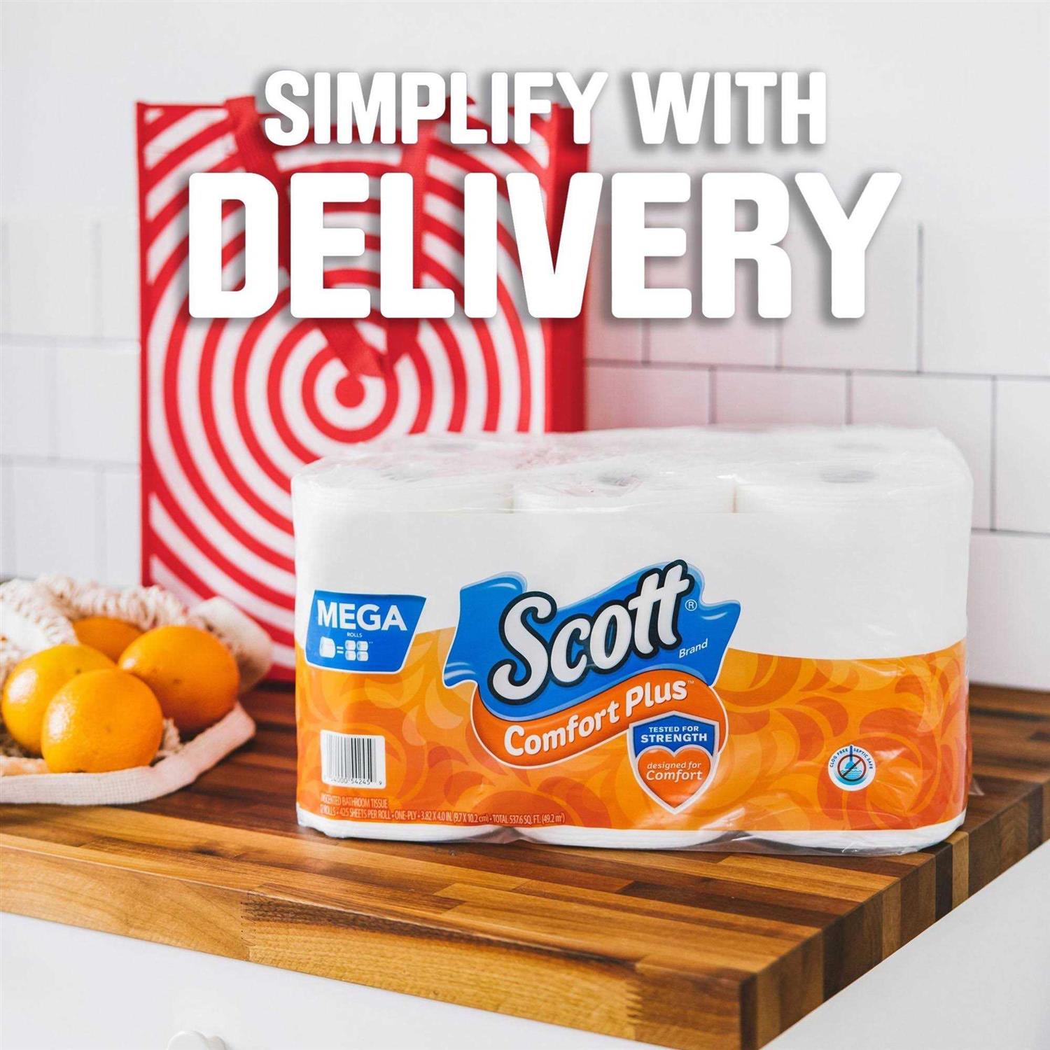 Discover comfort and clean you can trust with Scott ComfortPlus toilet tissue rolls. This 1-layer toilet paper that offers everyday comfort plus reliable strength. With Scott ComfortPlus Toilet Paper, you get 18 Mega Rolls of 425 sheets, so you have plenty of toilet paper for you and your loved ones. 3x stronger than the leading bargain brand, Scott ComfortPlus breaks down 6x faster vs the leading brand one ply and is sewer-safe, septic-safe and clog-free.And here’s one more reason why Scott ComfortPlus toilet paper is the perfect addition to your household supplies: our 1-ply toilet tissue paper combines just the right amount of softness and strength by featuring thick and plush sheets for a trusted, comforting clean. Keep life rolling by ordering Scott ComfortPlus in bulk online!