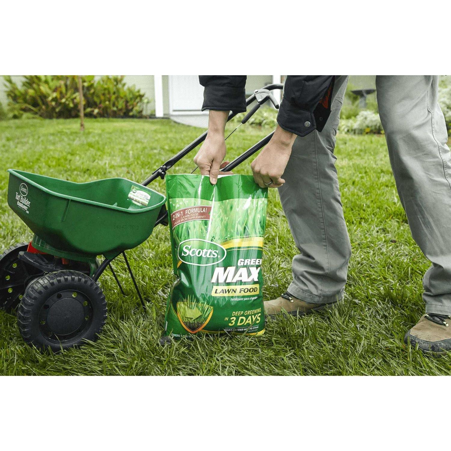 Provides essential nutrients for deeper greening in just three days Dual-action, 2-in-1 formula feeds and supplements with iron Thickens grass to fill in bare spots Builds thick, green lawns Thickens turf to crowd out new weeds Not sold in FL Product details Scotts It is proven safe to use during any season on any grass type and may be used right after application. This dual-action fertilizer immediately provides better and deeper greening in simply three days. If used directly, it is guaranteed to leave absolutely no stain except on sidewalks, driveways, and other hard surfaces. Its unique formula assures a 27-0-2 fertilizer analysis, offering 100% nutrition in each granule and making it highly effective. Best if applied using Scotts Spreader. It is perfect to apply every six to eight weeks for a better and greener lawn.