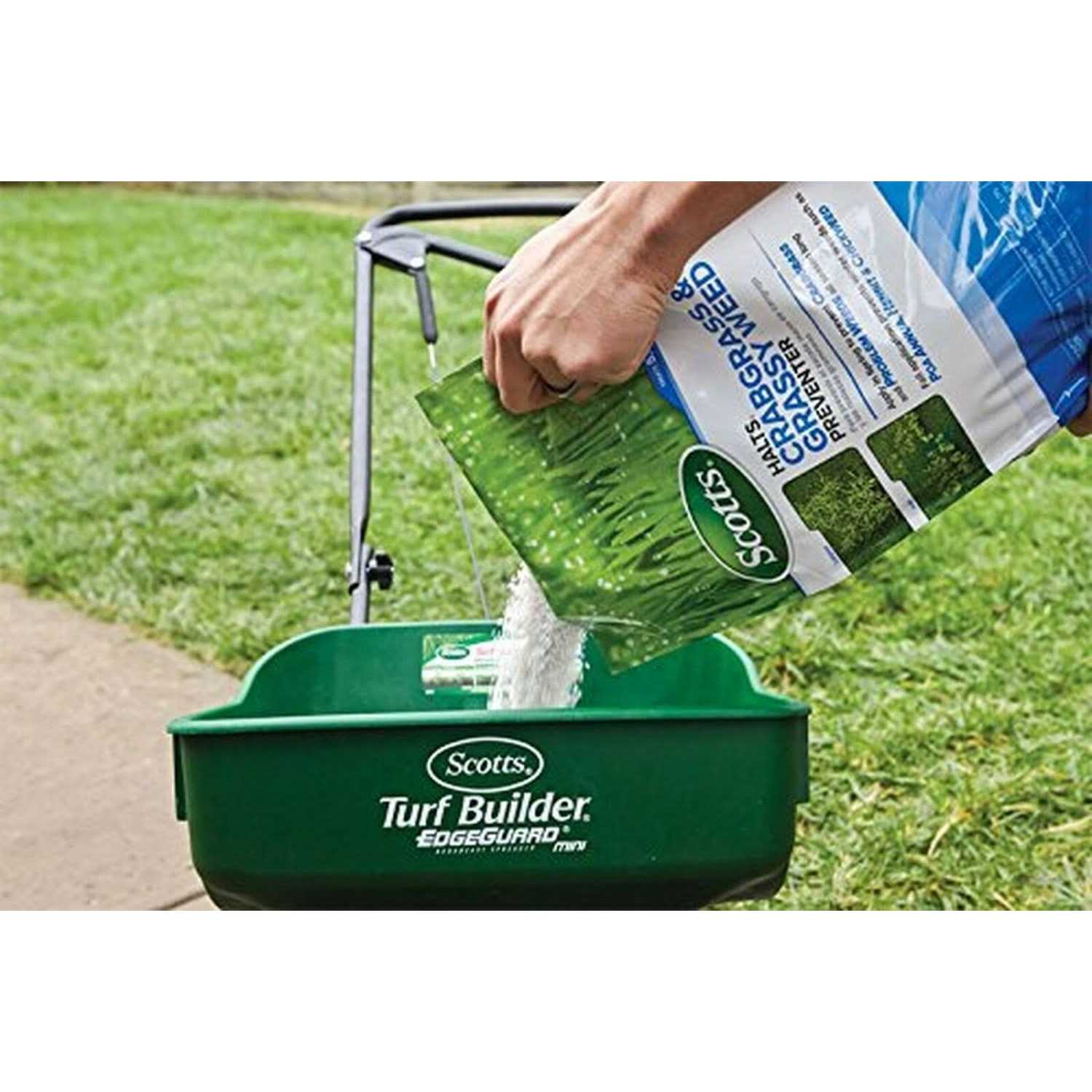 The Scotts Halts Brand Crabgrass Preventer forms a barrier in the soil to prevent the emergence of crabgrass throughout the season and controls it within a few weeks of germination. This product also helps prevent the germination of other common grasses and weeds to promote a healthier-looking lawn. Even rain or snow and freezing temperatures will not hinder or change the performance of the product once applied. The container holds enough to cover approximately 5,000 sq. ft.