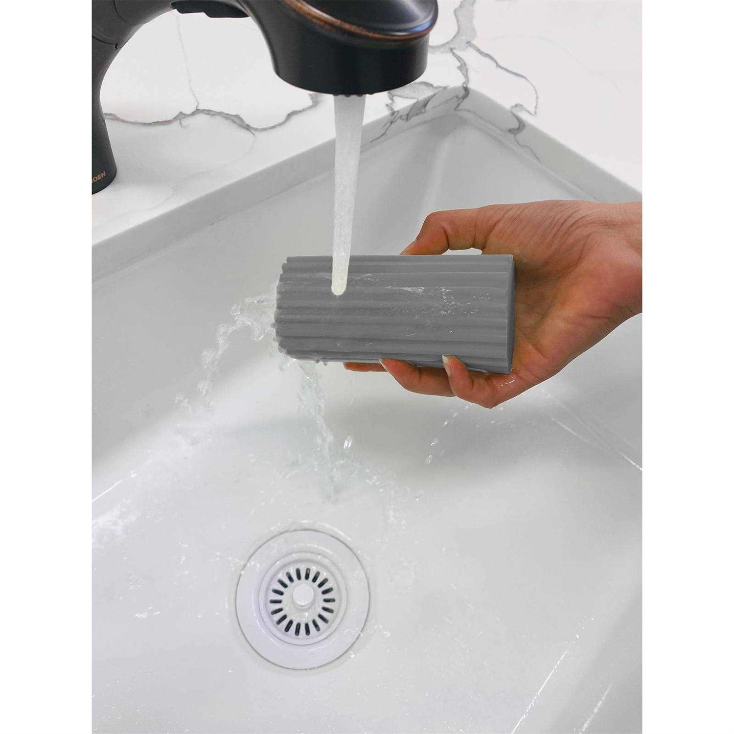 The well-known brand Scrub Daddy offers a wide range of texture changing sponges, each with playful designs. The sponges are scratch-free, can be used on any material and can be used for up to 8 weeks! This grey Scrub Daddy damp duster effortlessly takes care of all the dust in your home. One wipe and all dust particles and other contaminants are absorbed by this sponge, even the dust you can’t see! The ripples on the sponge means it will hold the dust, rather than letting it fly elsewhere in your home.This damp duster is pre-moistened in the packaging, but must be dampened with water before each use. The dust will remain in the sponge until rinsed under a tap again.