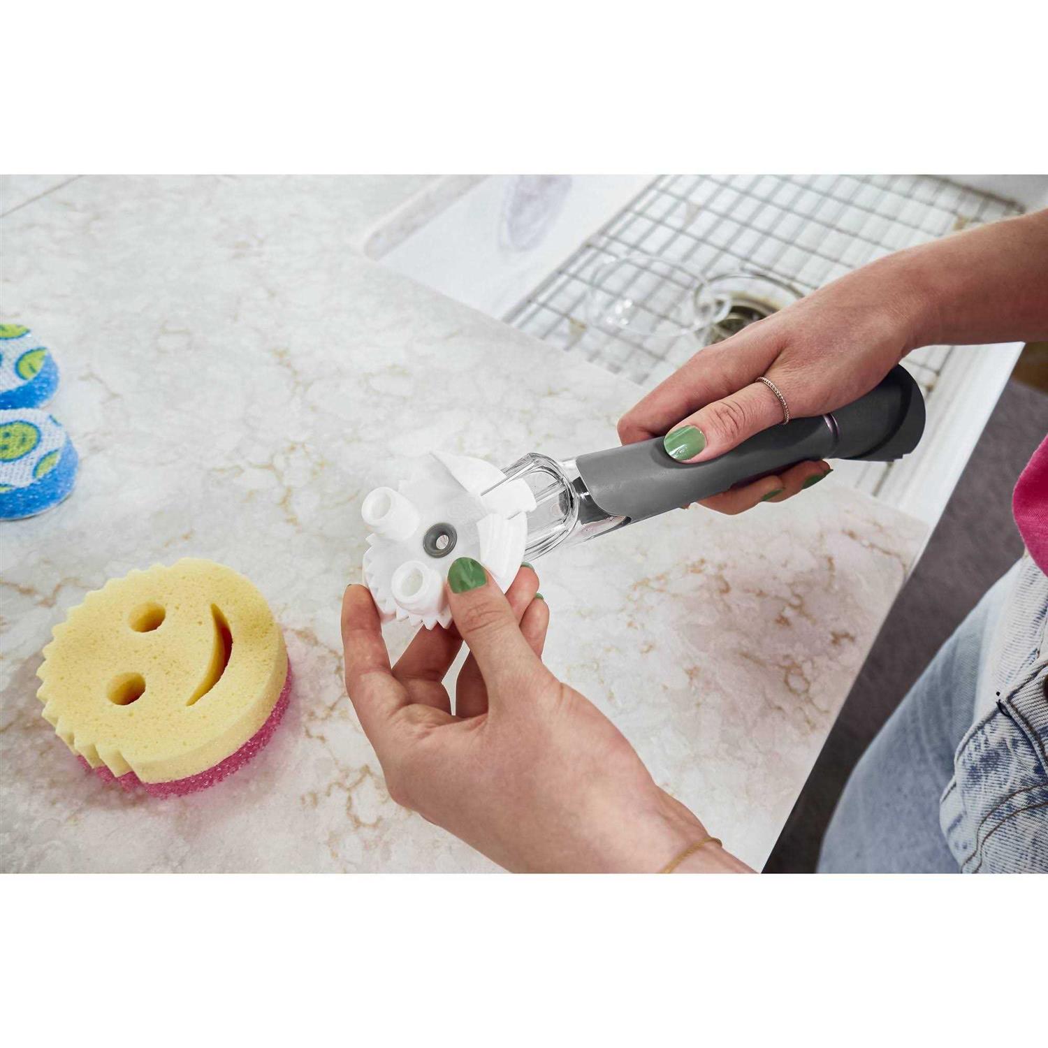 The Scrub Daddy Dish Daddy Converter Plate is perfect for hard-to-reach messes. Accessorize your Dish Daddy with this awesome attachment. Make washing your dishes an ease. The adapter allows your existing Scrub Daddy and Mommy smiling face sponges to be used for extra scrubbing power.