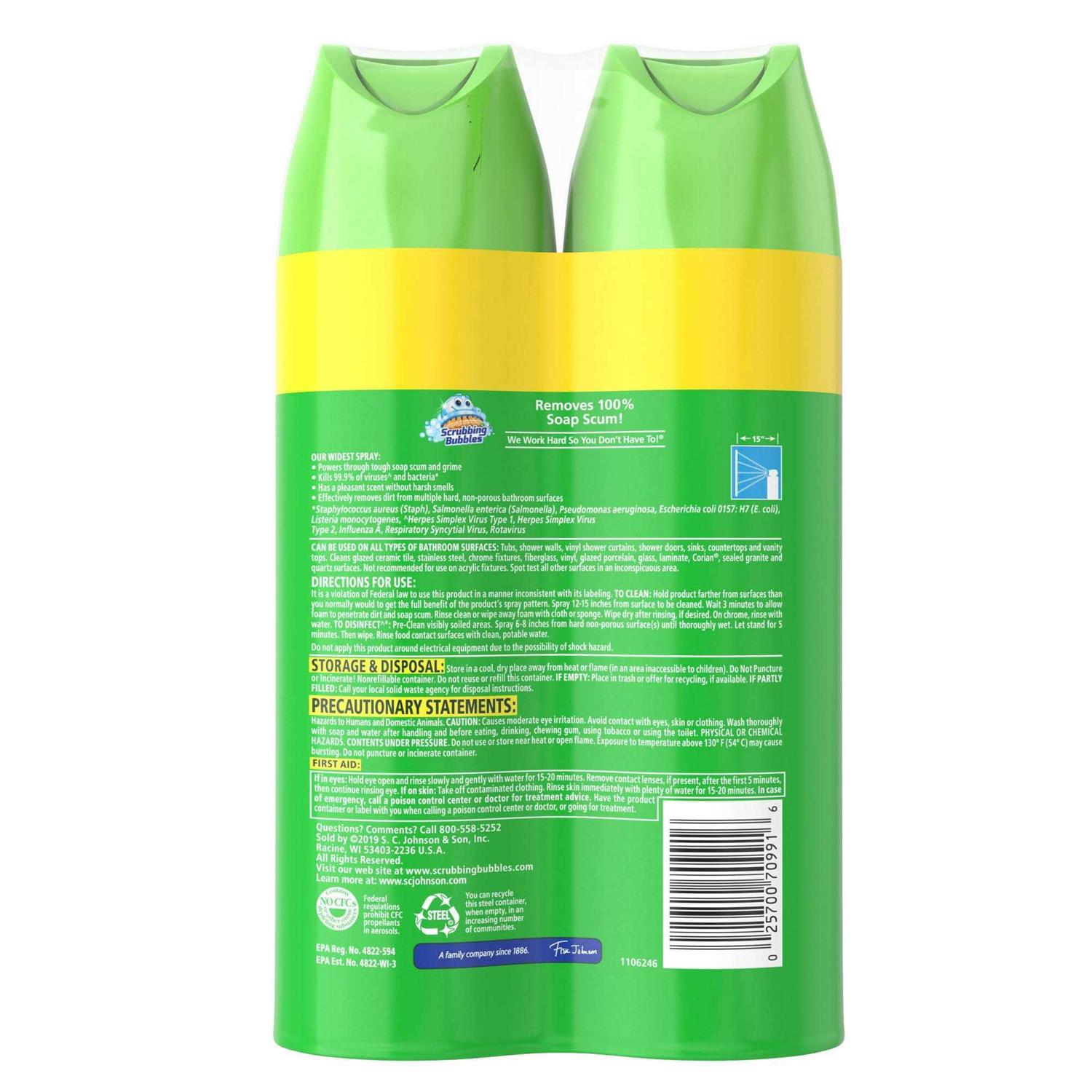 Scrubbing Bubbles Mega Shower Foamer is a foaming shower cleaner that makes it easy to clean your shower. The wide spray nozzle allows for complete coverage of surfaces and the ultra cling formula stays where you spray! The formula goes to work on contact, quickly cleaning soap scum, dirty and grime, so scrubbing becomes virtually obsolete. Just rinse and wipe away!