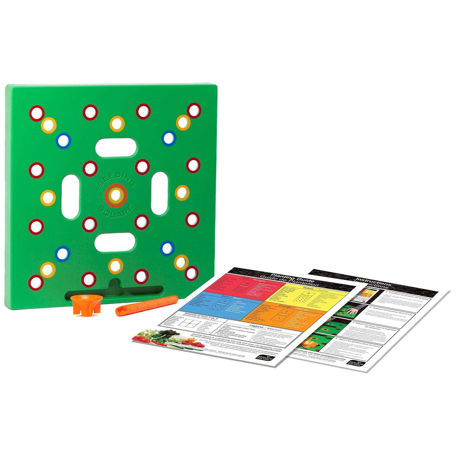Perfect spacing of your seeds (and seedlings) is fun and easy with color-coded holes Optimizes your garden plot for the highest yield possible Organizes the layout of your garden giving perfectly straight rows Drastically reduces the amount of weeds and makes them easy to spot Planting can be done in rows or by square-foot This square foot template helps you maximize growth in limited space. The concept is based off the popular gardening method, Square Foot Gardening – whereby seeds are sown in specific positions within a square foot, allowing enough room for each to grow to maturity without wasting space. Simple to use, the template shows correct seed spacing with color-coded holes matched to a planting chart of 46 types of vegetables, allowing you to quickly know where to drop seed or seedling. A graduated dibber with depth markings takes the guesswork out of setting the right planting depth. The dibber also functions as a seed spoon, which can be used with the included funnel to deposit tiny seeds accurately. When done seeding a square foot section, the impressions left in the soil allow you to line up the template for the next square foot, thus letting you use it to plant your entire garden. Made from sturdy plastic, its a tool that will last year after year. Ideal for all ages, experience levels and sizes of garden.