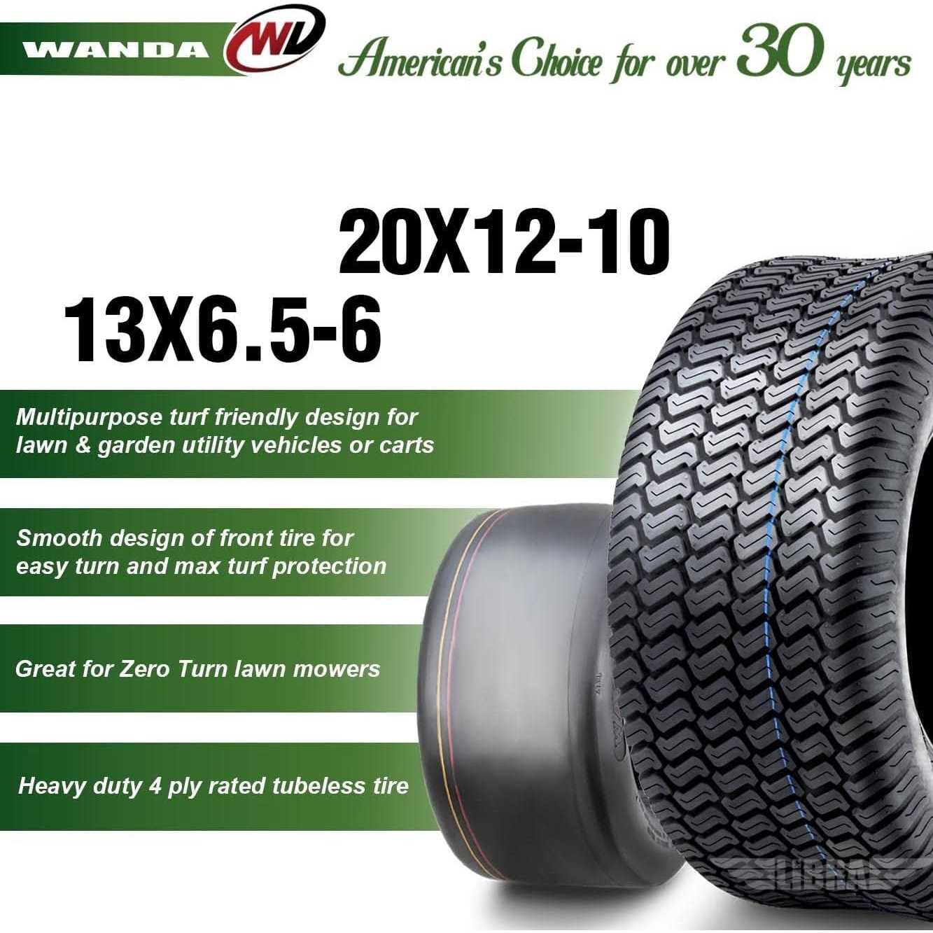 Multipurpose turf friendly design for lawn & garden utility vehicles or golf carts. Great for Zero-Turn lawn mowers. Wide shoulders design for maximum traction and weight disbursement. Heavy duty 4 ply tubeless tire, tires only, rims are not included. 30 year trusted WANDA brand