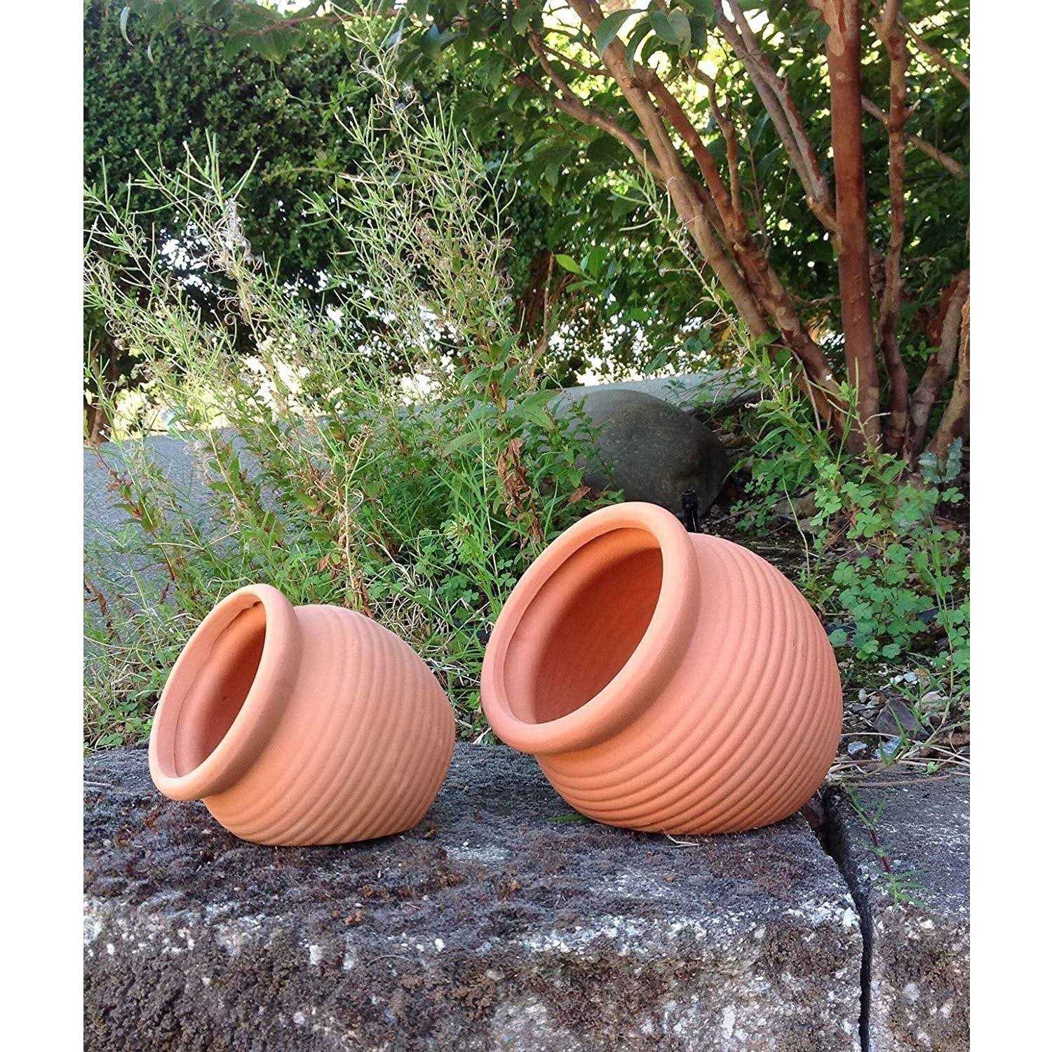 Set of 2 Different Size Natural Terracotta Fallen Pots or Hanging Pots
