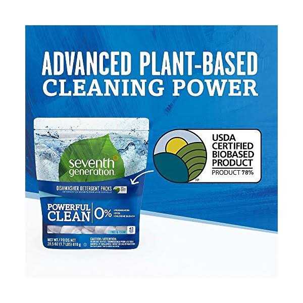 Laundry Packs give you everything you love about Seventh Generation’s dirt-fighting, triple-enzyme formula in convenient single-dose packs. No measuring, no guesswork, no waste, no spills. Easy-to-use packs give the perfect amount of grease-fighting power for a total clean, leaving no iffy scents behind. Simply place one single-use pack into your dishwasher to remove grease, grime and even dried, stuck-on food. Enzyme-rich formula cleans without phosphates or chlorine. Scent-free packs are hypoallergenic and Free and Clear of dyes and fragrances. They are USDA Certified Bio-based – 78 percent, Kosher certified and Leaping Bunny Certified.