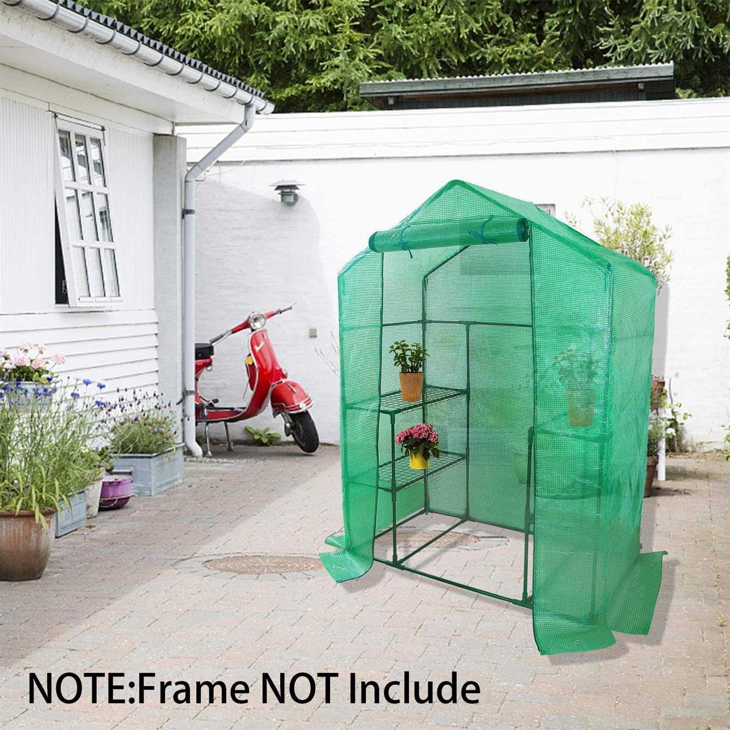 Suitable Size: More details in picture, frame greenhouse is Not include. PE Material: Heavy duty reinforced polyethylene cover,not need to worry about the greenhouse will deformed. Waterproof&Anti-UV: The product is 100% waterproof and anti-UV to enable your plant and flowers to absorb more sunshine provide enough room for theirs growth. Roll-Up Zipper Door Design: Designed with roll-up zipper door for easy access and screened ventilation for optimum air circulation. Easy Assembly & Storeage: You can easily assemble with no tools required.Storage is a breeze too.The indoor outdoor greenhouse can be easily folded up and be put it in basement when you’ve finished using it. It only occupies a small area.