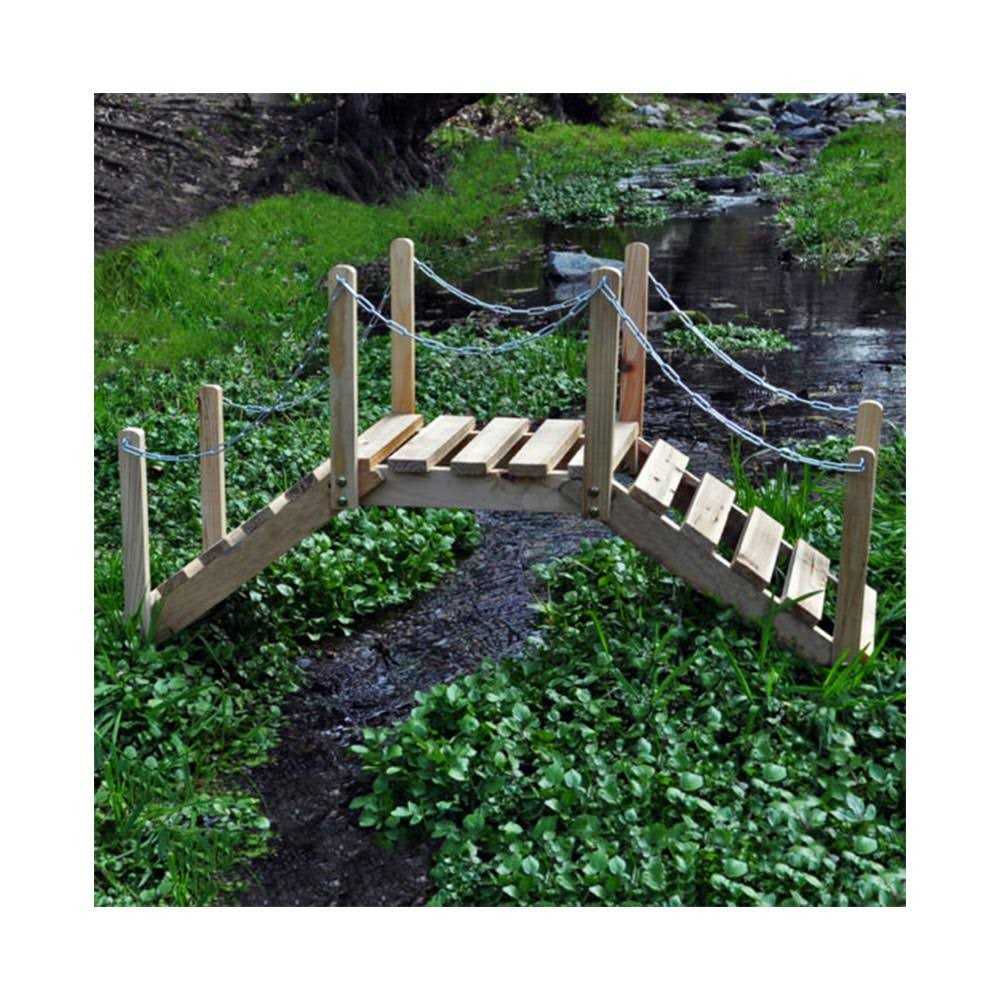 Sturdy frame built from solid cedar. Minimal assembly required. Dimensions: 45L x 11W x 18.5H inches. The Decorative Garden Bridge – Natural accents your garden pathway or backyard water display with unique, country style. This charming little footbridge is built from solid cedar a features a wide slatted design that pairs well with Adirondack-style lawn furniture. The piece comes unfinished to emphasize the natural beauty of the wood; cedar is naturally-resistant to insect decay and moisture, or you can paint or stain the piece any way you wish. Piece is decorative only and not intended for use. Rust resistant galvanized steel screws and hardware are included. Piece requires some assembly.About Shine Co.Shine Co. has been producing quality wood furniture, home accents, and decorative pieces for over 30 years. Each piece is assembled by an experienced craftsman with great care and attention to detail.