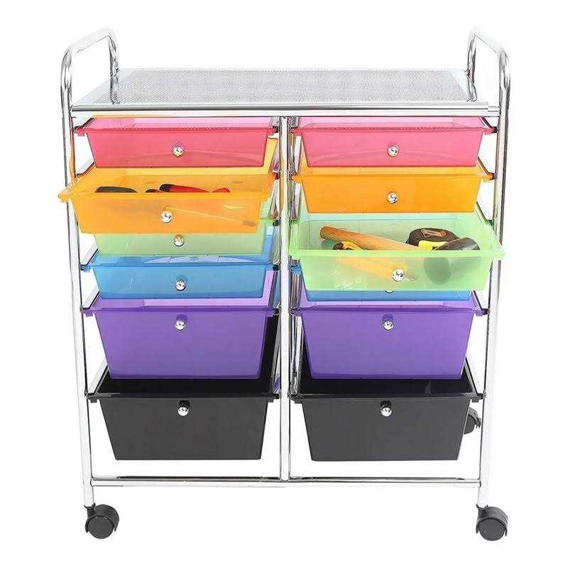 Purchase the Multicolor 12 Drawer Rolling Cart by Simply Tidy at Michaels. Organize your craft room classroom or art studio with this 12 drawer rolling cart. Organize your craft room classroom or art studio with this 12 drawer rolling cart. It features colorful drawers a top that allows for extra work space and convenient casters to move the cart around for enhanced comfort and ease of use. Never use scouring powders abrasives or chemical cleaners. WARNING Adult assembly required. Please use care when unpacking parts from this box. May contain small parts with sharp points and edges. Do not leave children unattended with the cart. Never lean stand or climb on the cart. To prevent the cart from being top-heavy and tipping over place heavier items in the bottom drawers. Set cart on a level surface only.