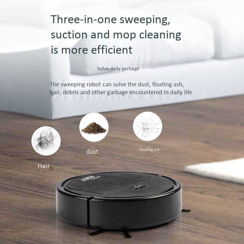 One click open, easy to operate. Multi function vacuuming, sweeping, mop. This robot vacuum cleaner can recognize the barrier and avoids collision. Suitable for cement floors, ceramic tiles, wooden floors, short-haired carpets, etc. Low Noise Operation, Strong Suction: low noise, giving you a quiet environment during the floor cleaning. It easily absorbs dust, hair, paper chips, cookie crumbs and so on. Way of walking: steering when encountering obstacles Working mode: sweeping, vacuuming, mopping Battery capacity: 1500mAh Charging time: 4h Rated voltage: DC3.7V Sweeper function: drag sweep suction Colour: black Material: plastic + electronic components Size: 23.5×23.5×5.5cm Package Contents: 1 * Smart sweeper 1 * Charging cable 2 * Brush 1 * Mop Only the above package content, other products are not included. Note: Light and different displays may cause the color of the item in the picture a little different from the real thing. The measurement allowed error is +/- 1-3cm.