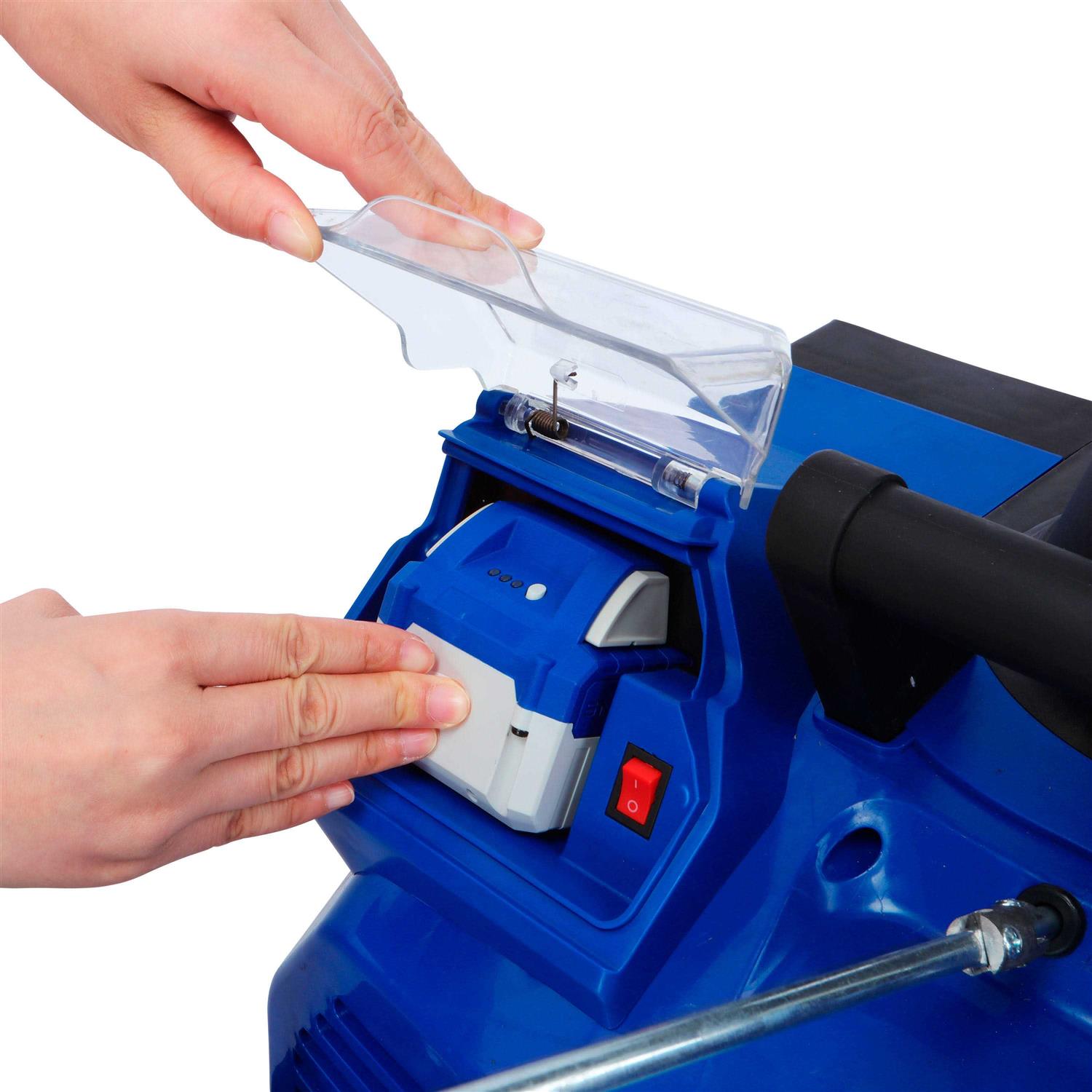 Introducing the latest revolution in snow-clearing technology: the iON 48-Volt 18-inch Cordless Snow Blower from Snow Joe. Powered by Snow Joe’s exclusive iON 24-volt lithium-ion battery system, the two included 4.0 Ah batteries provide rechargeable runtime with zero carbon emissions for cleaner air. Only iON delivers the breakthrough power and performance of gas with cutting-edge cordless convenience to blast past the limits of an extension cord and go anywhere power is at a premium. Equipped with a heavy-duty, rubber-tipped steel blade auger, this snow blower can clear an 18-inch wide by 10-inch deep path in a single pass. The powerful 1200-watt brushless motor plows through up to 10 tons of snow per charge, while the integrated scraper bar at the base of the unit clears right to the ground without damaging your deck, driveway or pavement. The adjustable chute control rotates 180 degrees to throw snow up to 20 feet away, and and after dark, the integrated two-watt LED headlight makes nighttime clearing safer, to keep on throwing when it just won’t stop snowing!